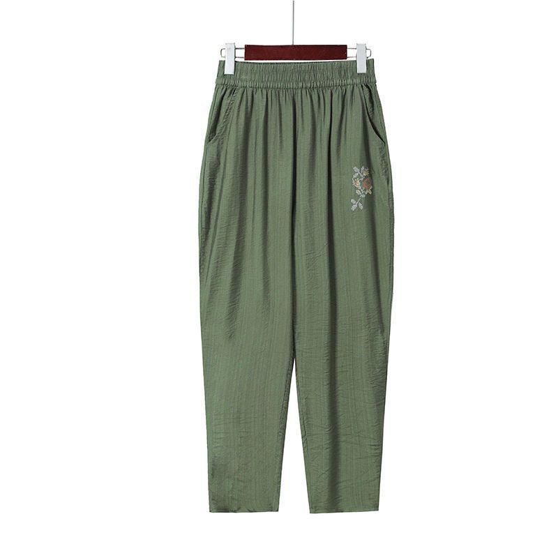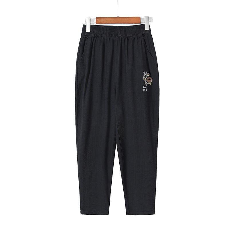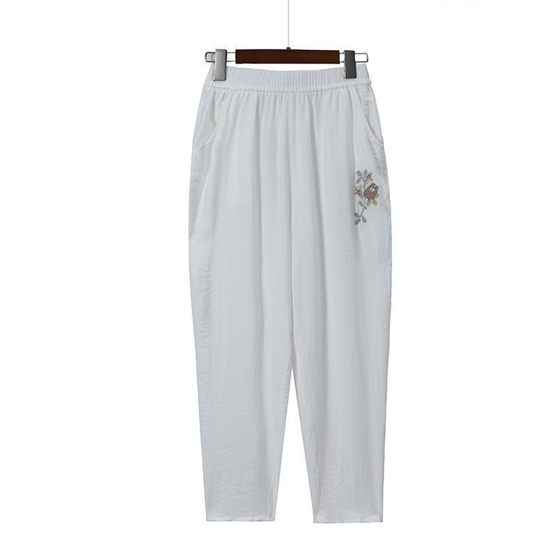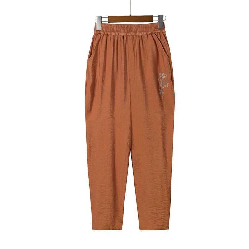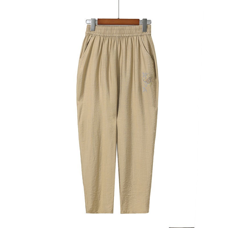 妈妈裤夏季薄款灯笼裤显瘦绣花冰丝麻直筒小脚裤宽松休闲中老年裤