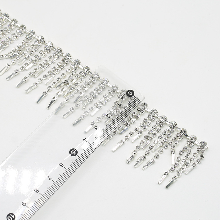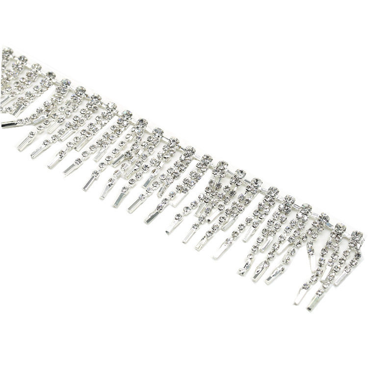 厂家直销亚马逊热销 焊接水钻流苏钻链 电镀银色外贸新款流苏爪链