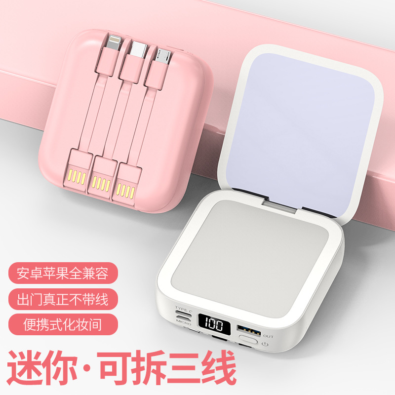 新款美妆镜自带三线充电宝 20000毫安快充便携移动电源 定 制logo