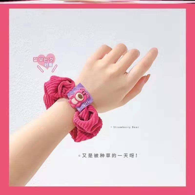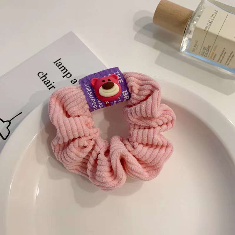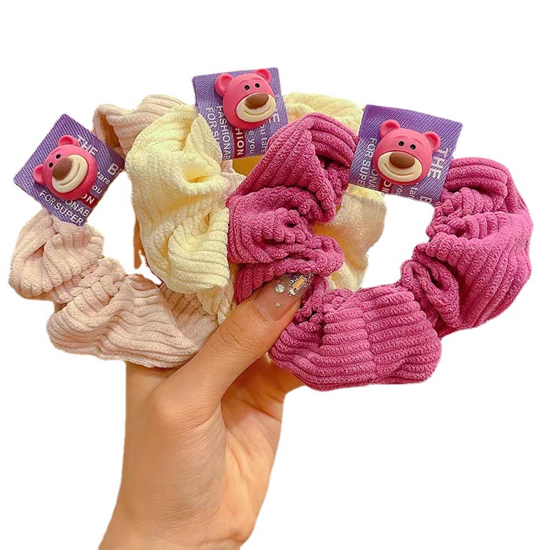 韩版草莓熊大肠发圈扎马尾丸子头绳简约可爱灯芯绒时尚百搭头饰
