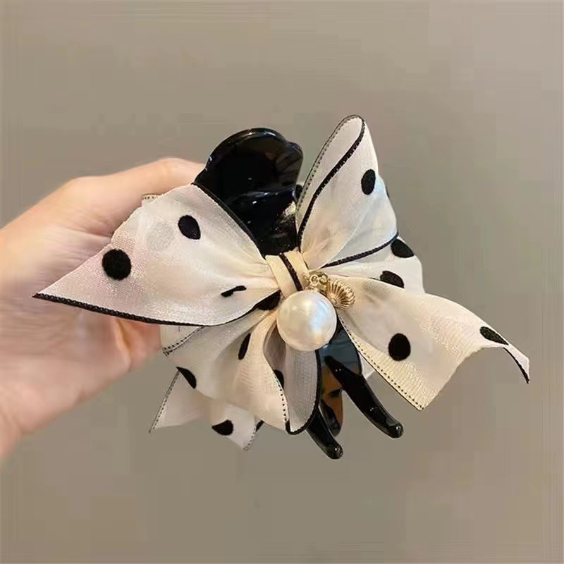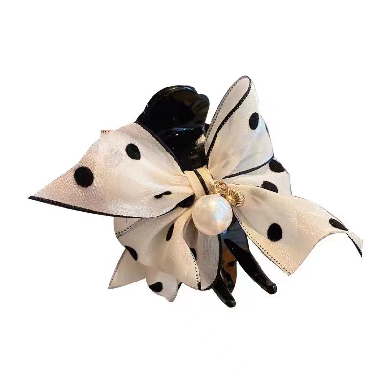 韩版蝴蝶结珍珠吊坠抓夹高级感抓后脑勺丸子头发饰简约百搭