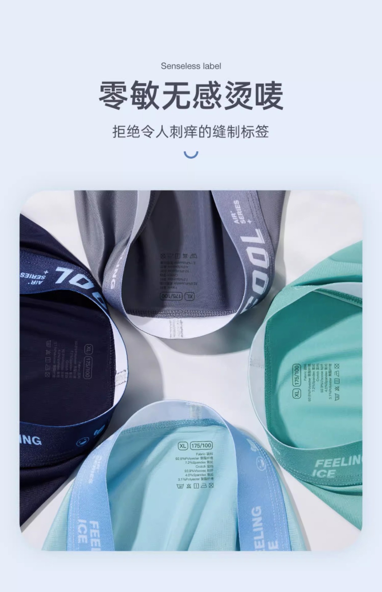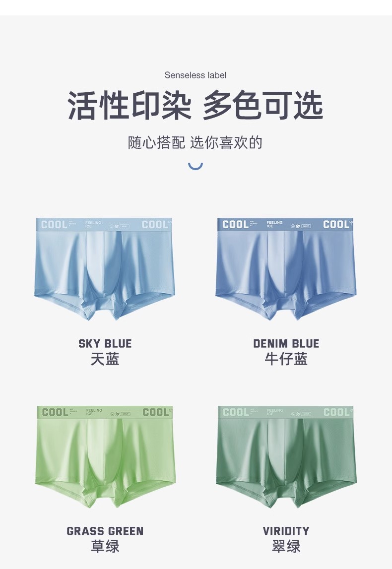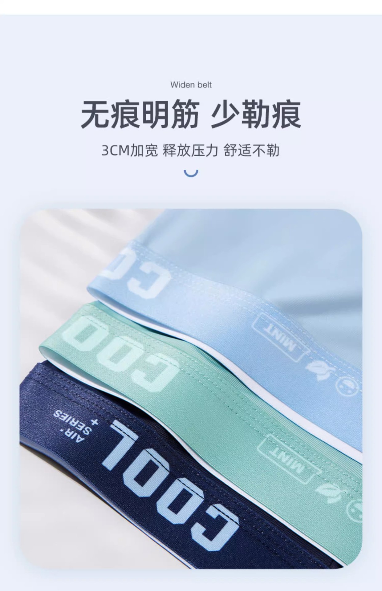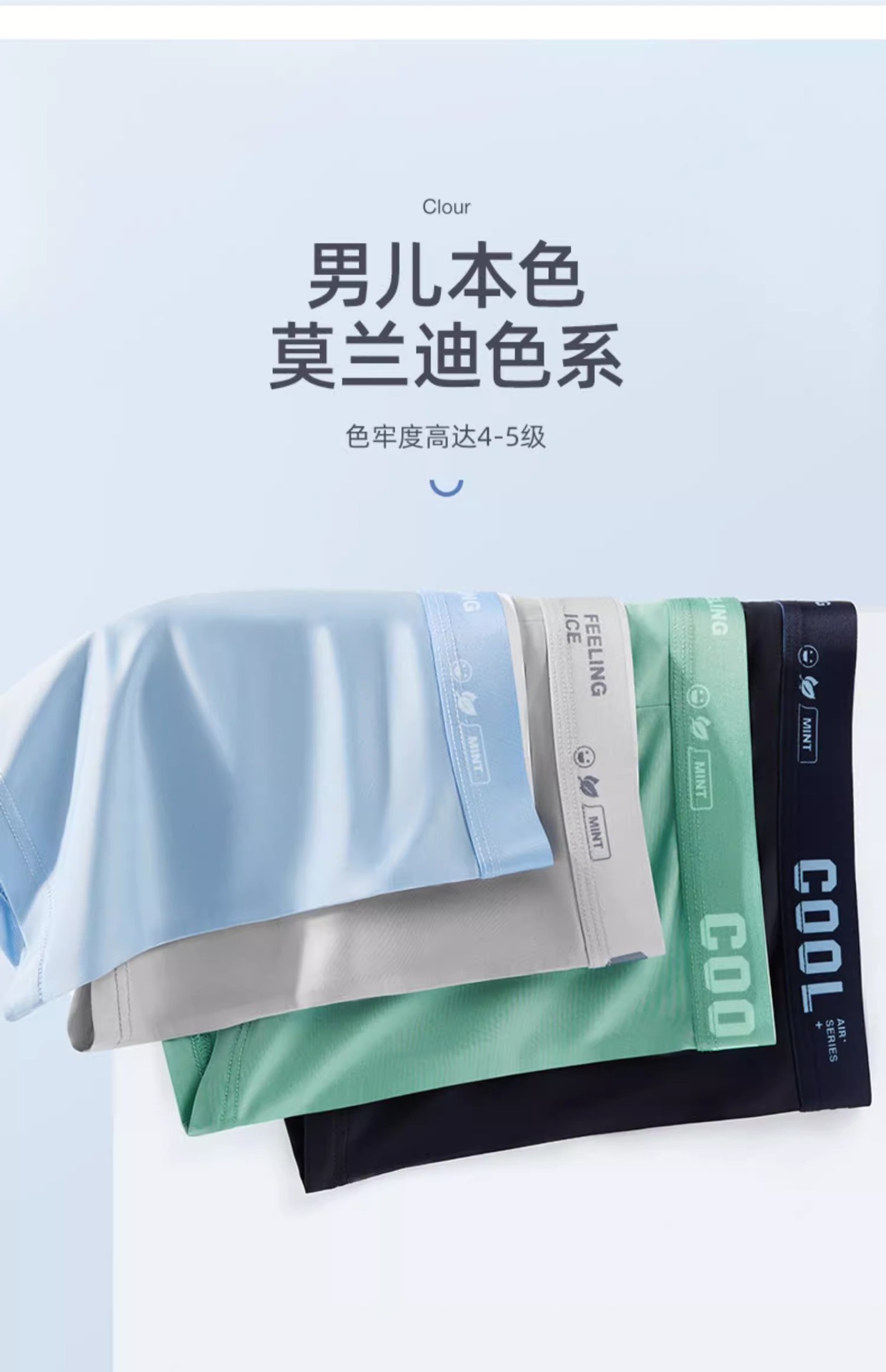 南极人凉感冰丝男士内裤夏季薄款透气无痕平角裤四角短裤头