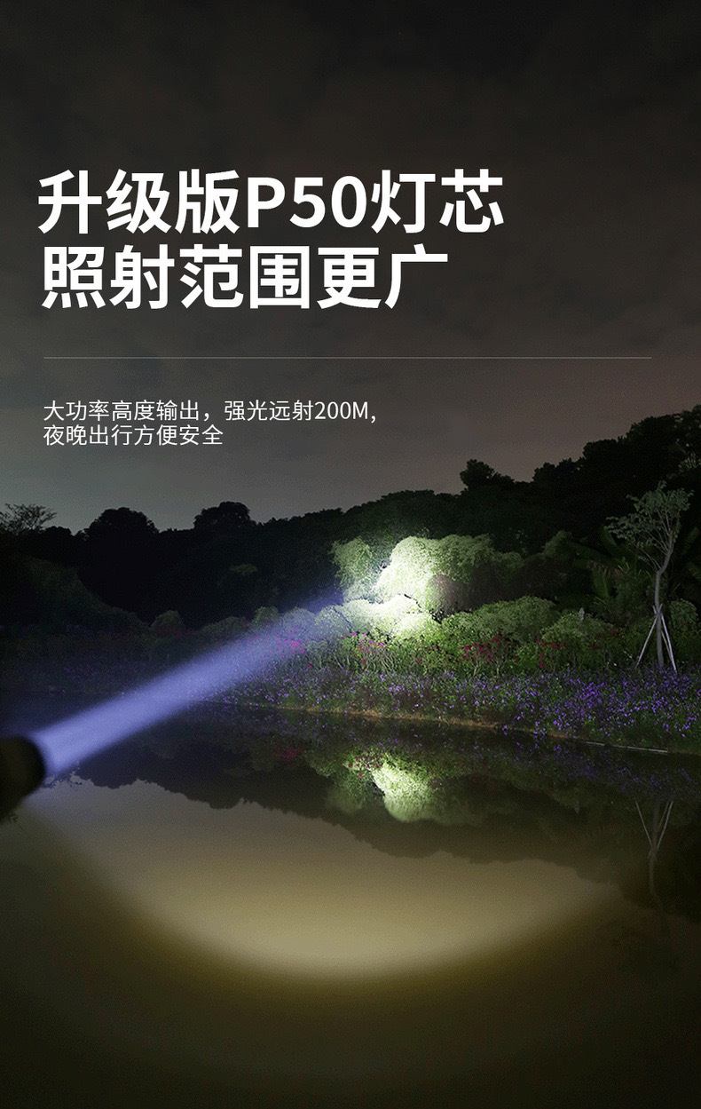 跨境新款强光手电筒多功能户外露营灯便携式迷你白激光手电工作灯