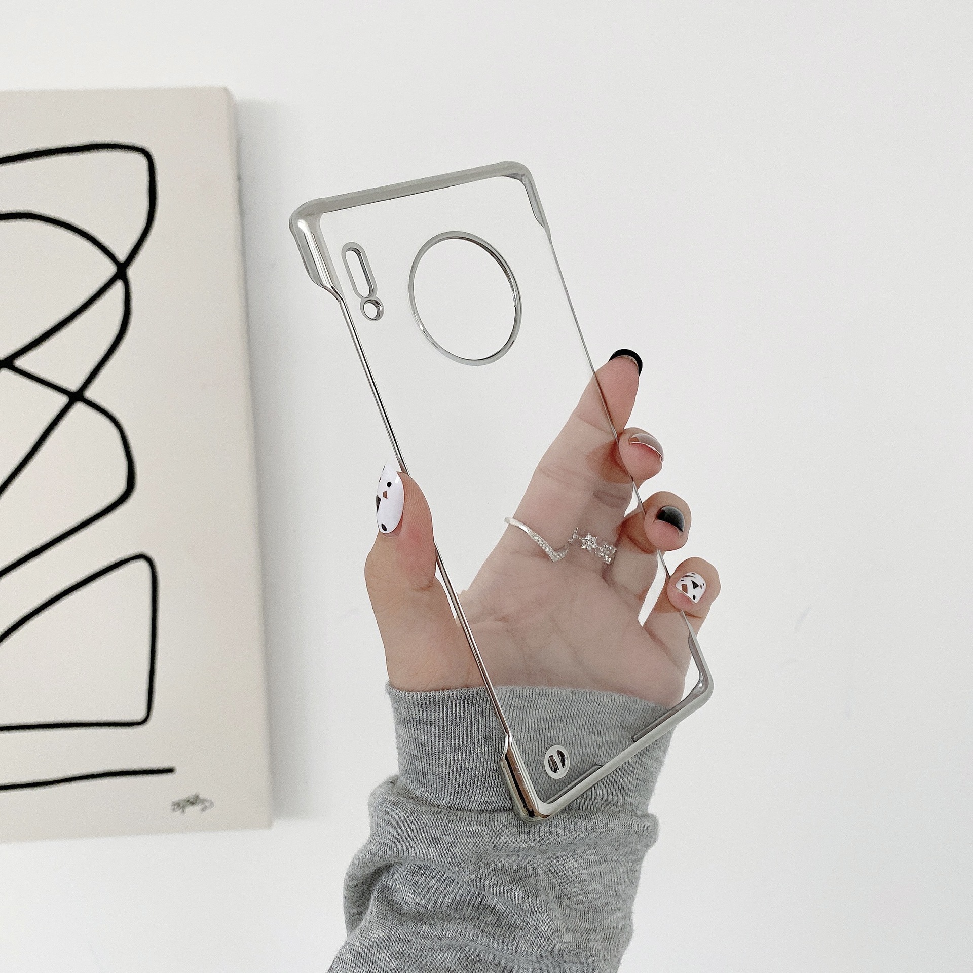 适用华为mate50pro手机壳magic5透明无边框电镀防摔半