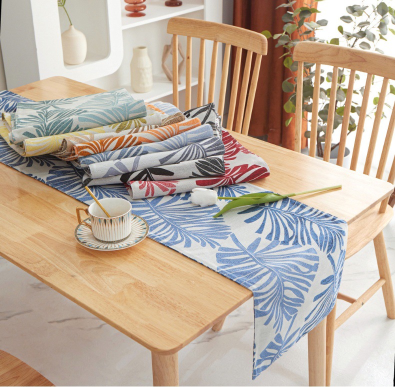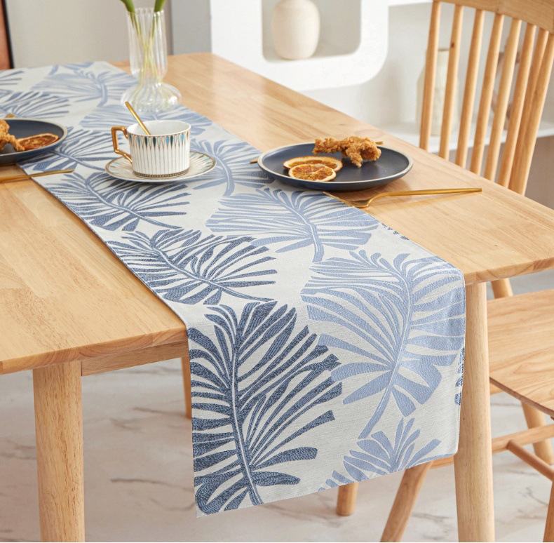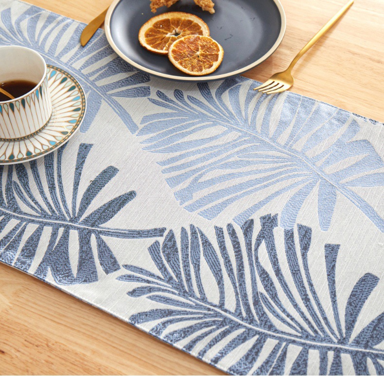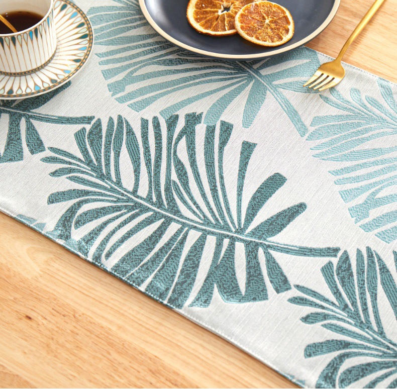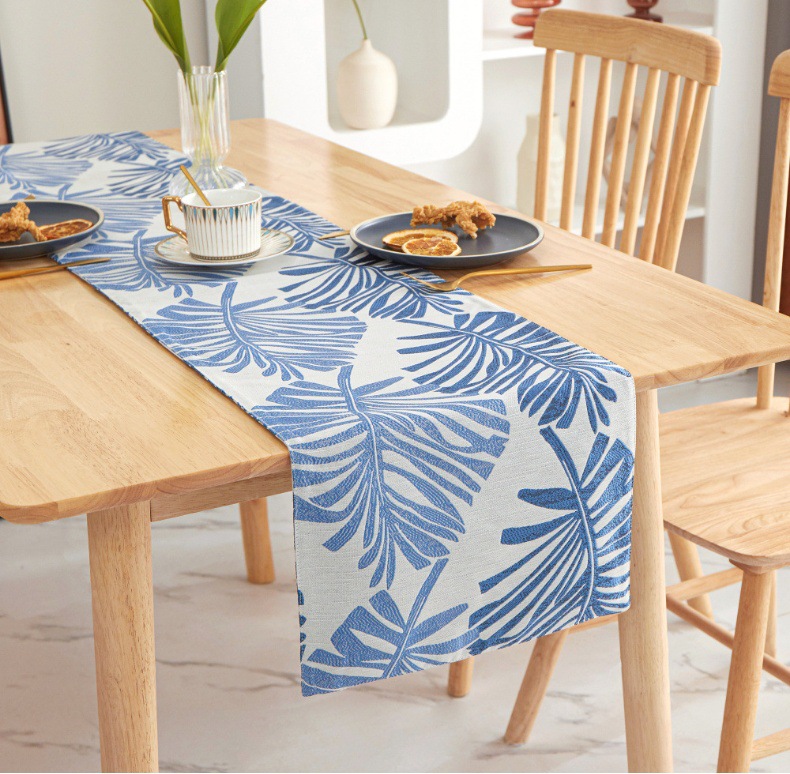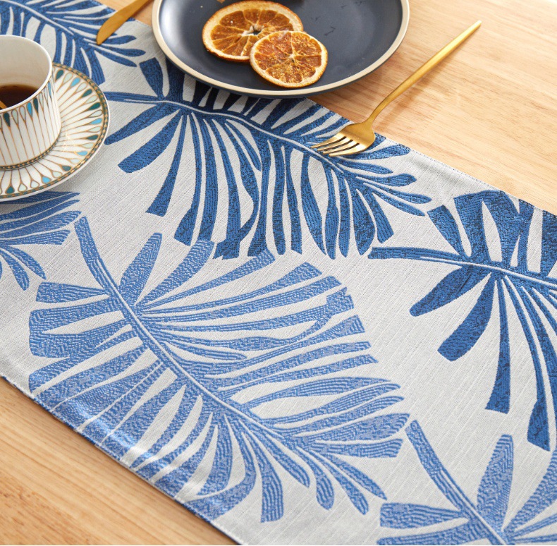 ins北欧风双面花卉棕树叶亚马逊新品桌旗客厅茶几垫桌布居家装饰