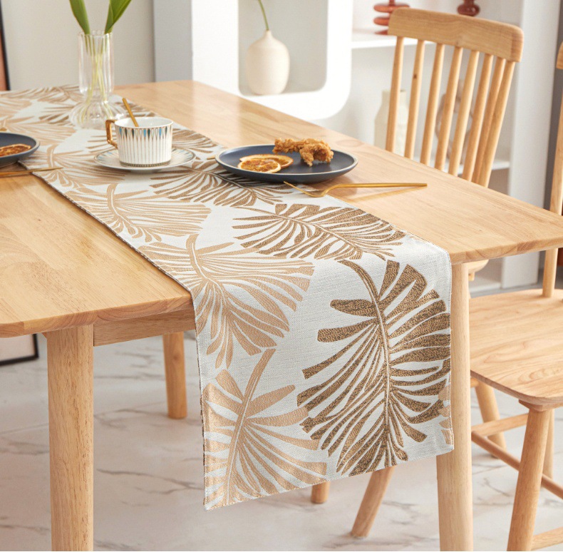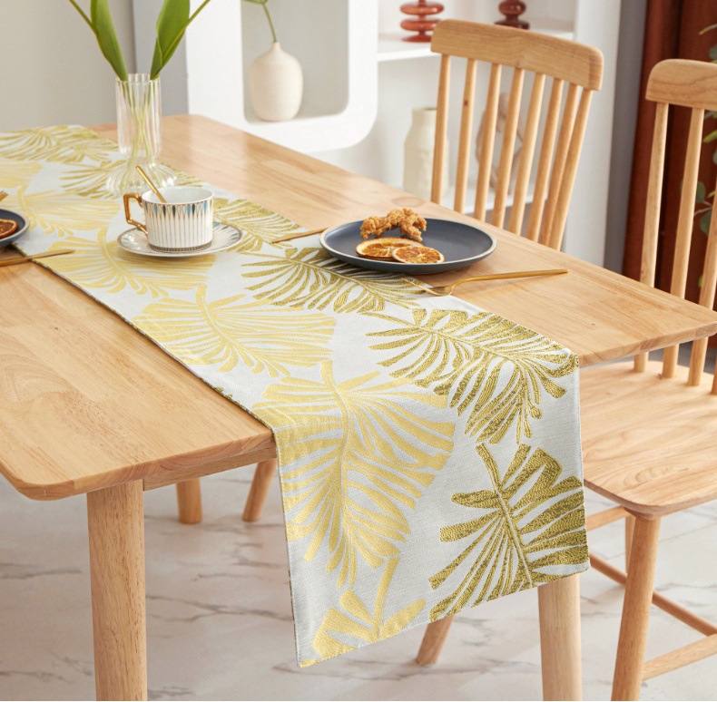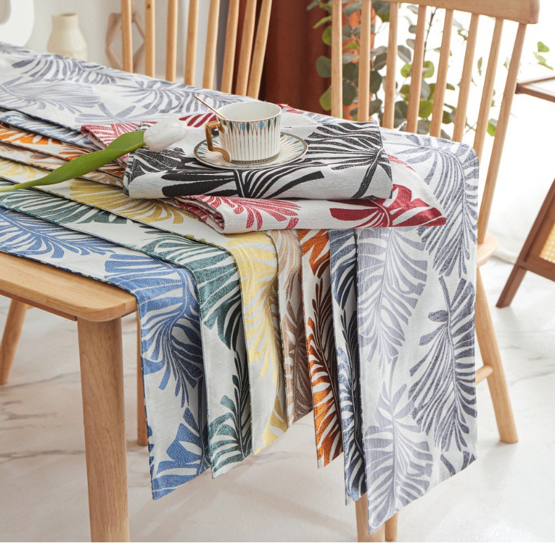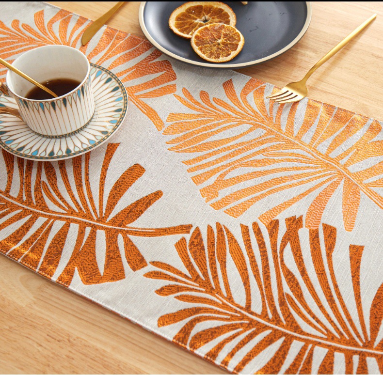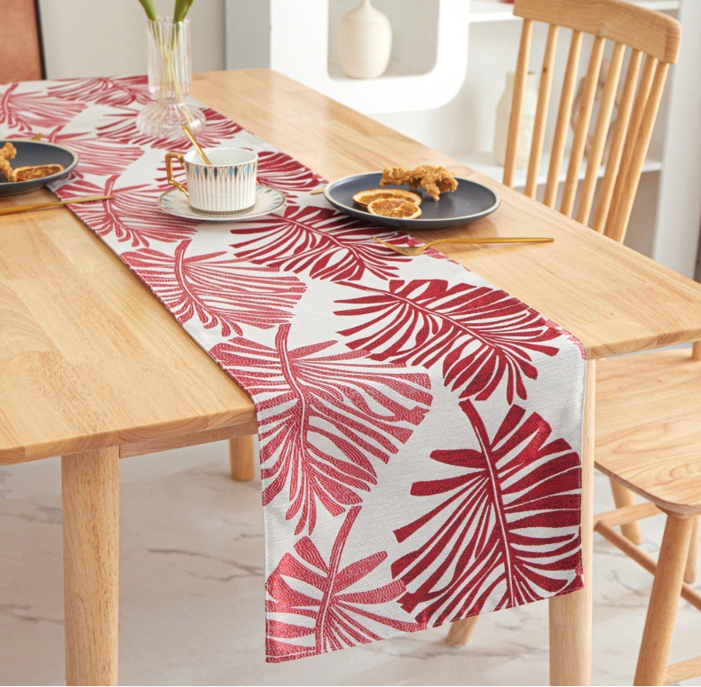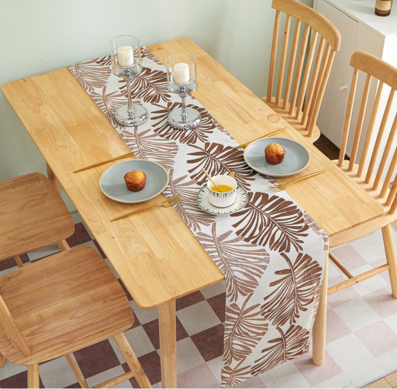 ins北欧风双面花卉棕树叶亚马逊新品桌旗客厅茶几垫桌布居家装饰