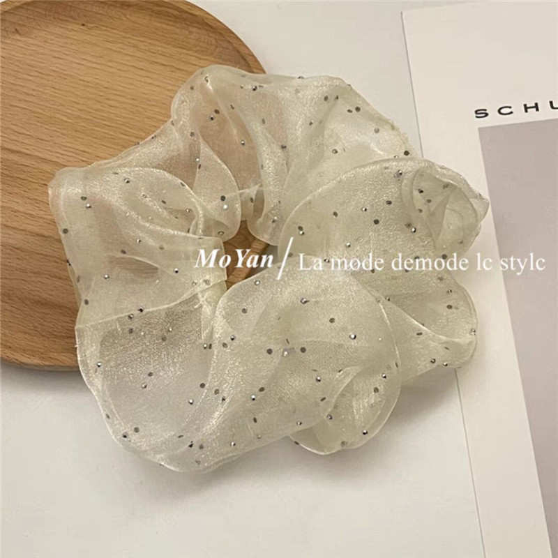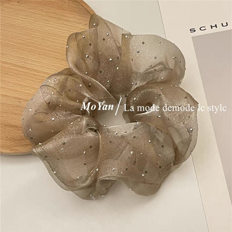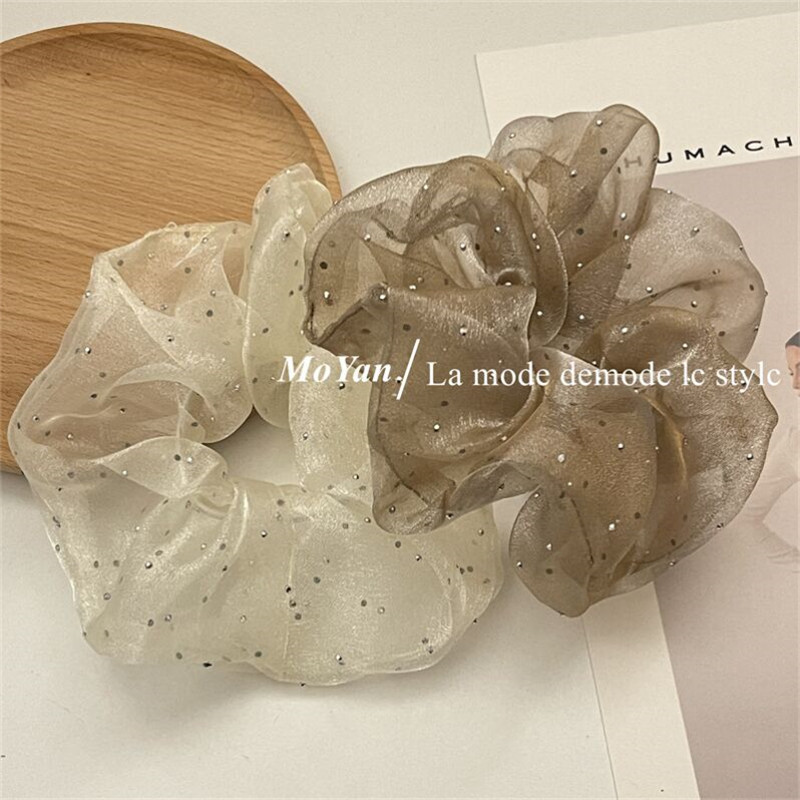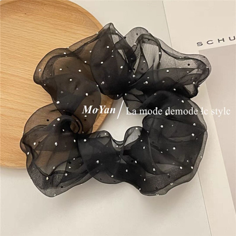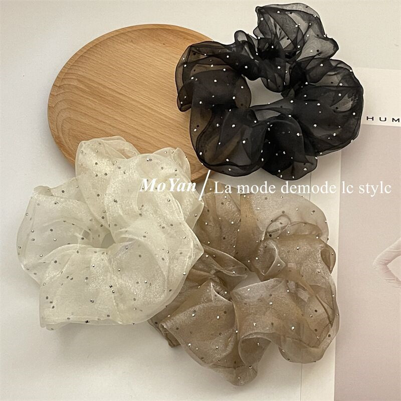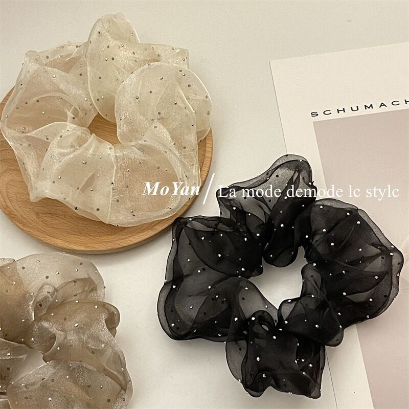 超仙烫钻网纱发圈气质扎马尾皮套女简约百搭丸子头发饰波点大肠圈
