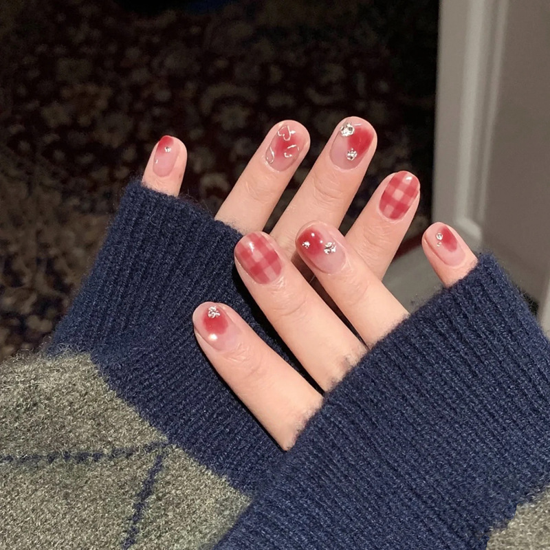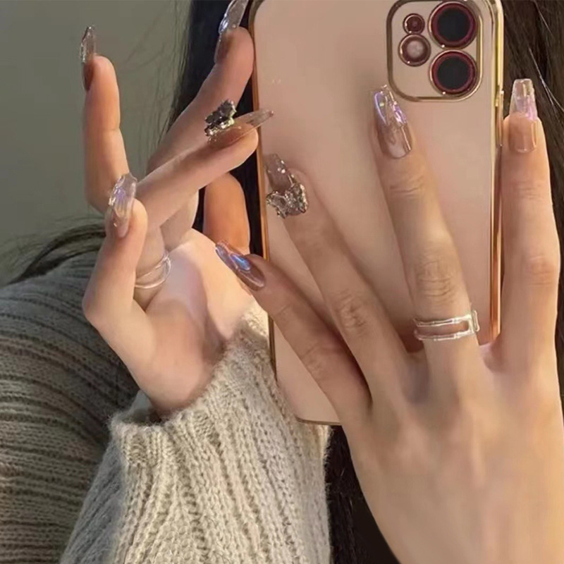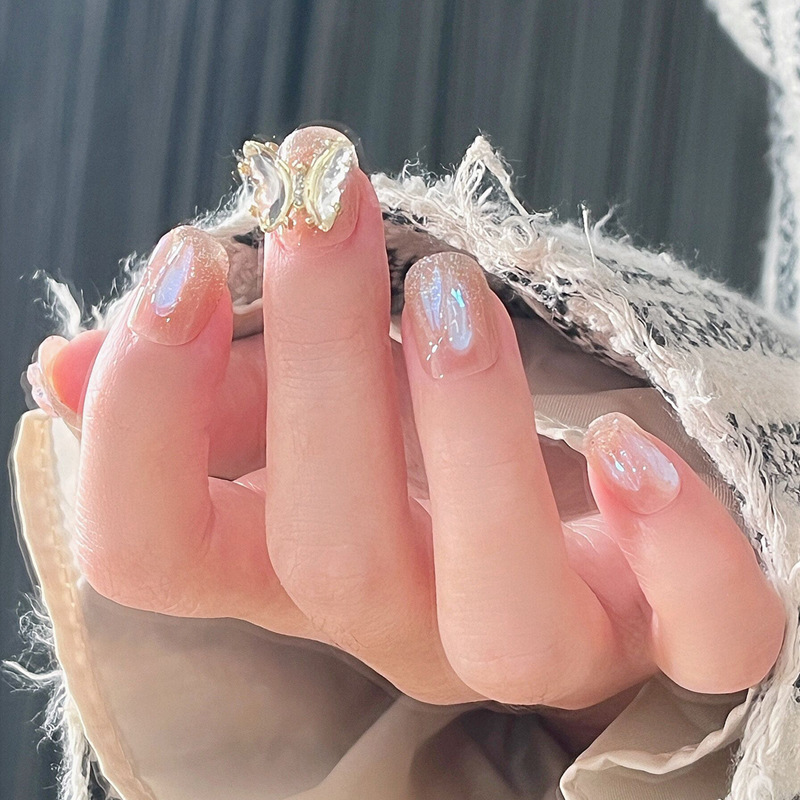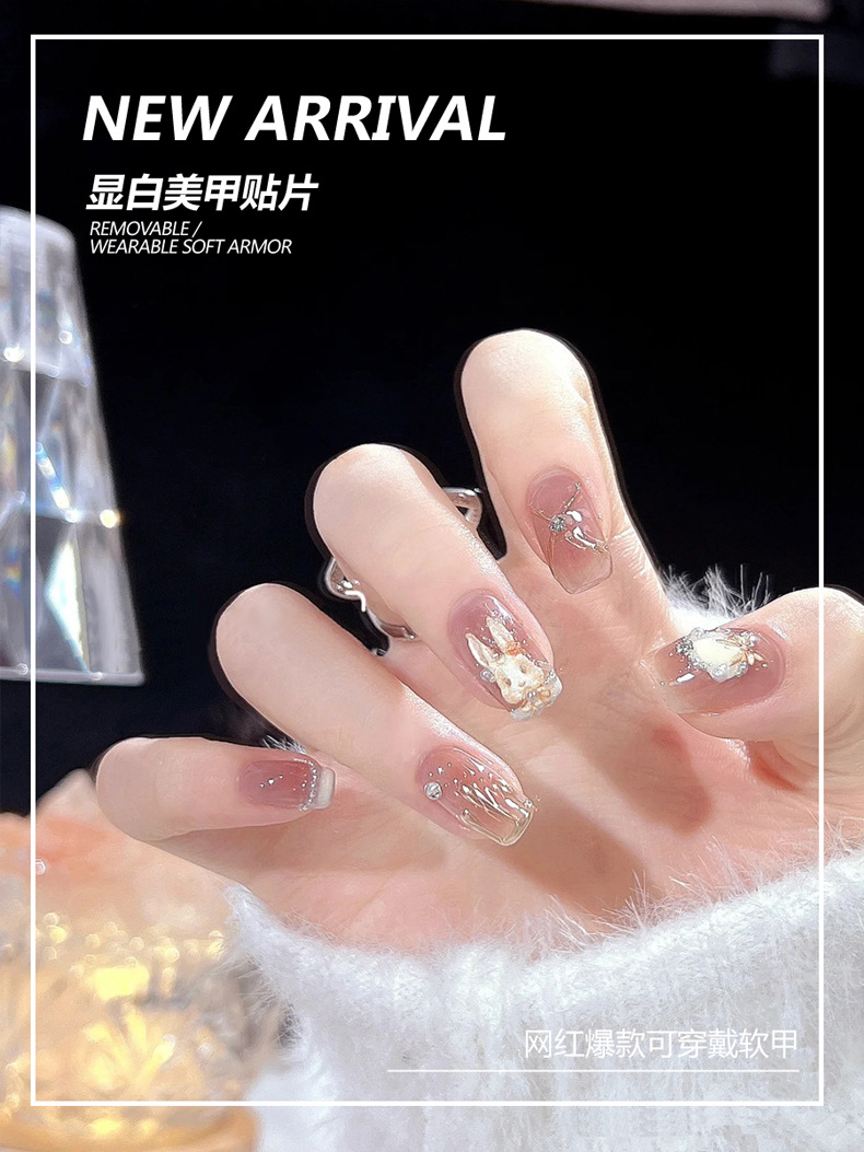 新款手工穿戴甲甲片批发裸色闪粉可爱兔子美甲成品指甲贴片果冻胶
