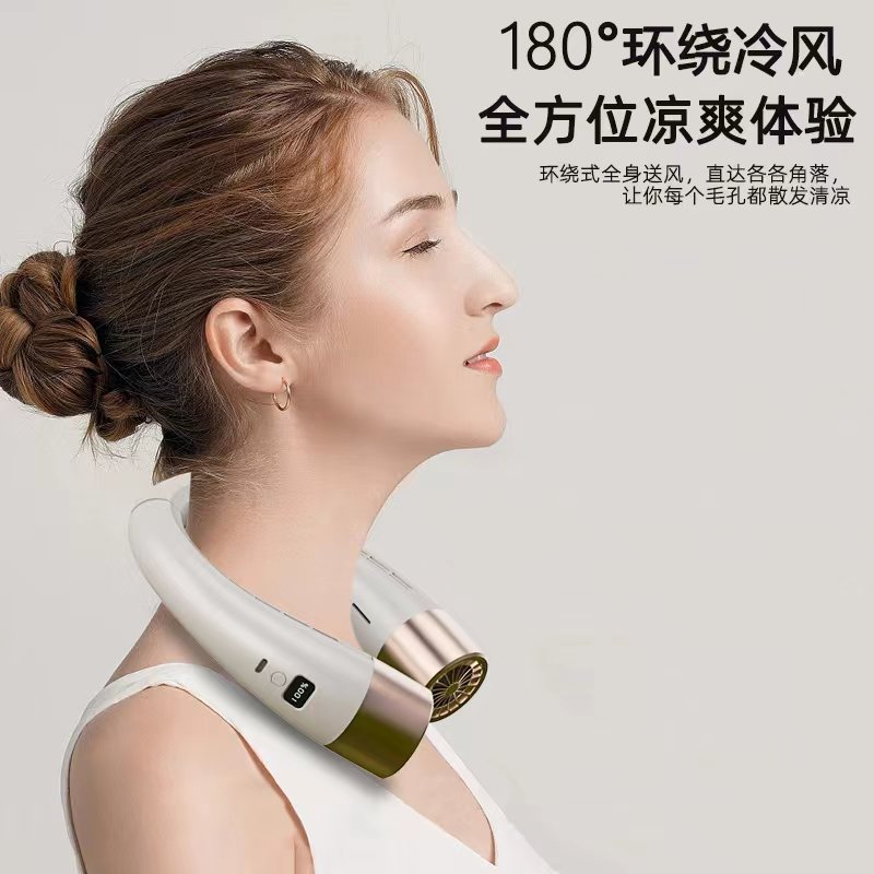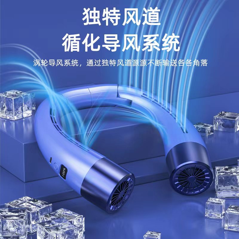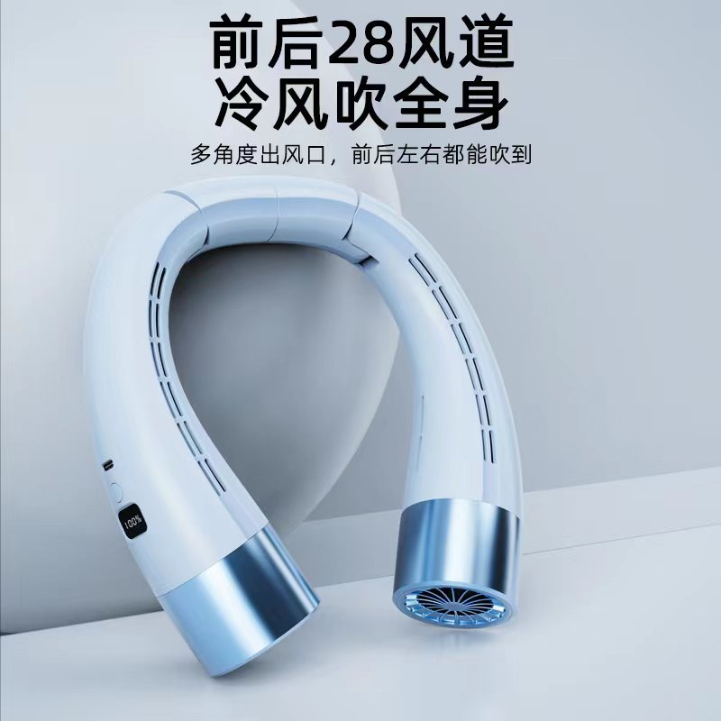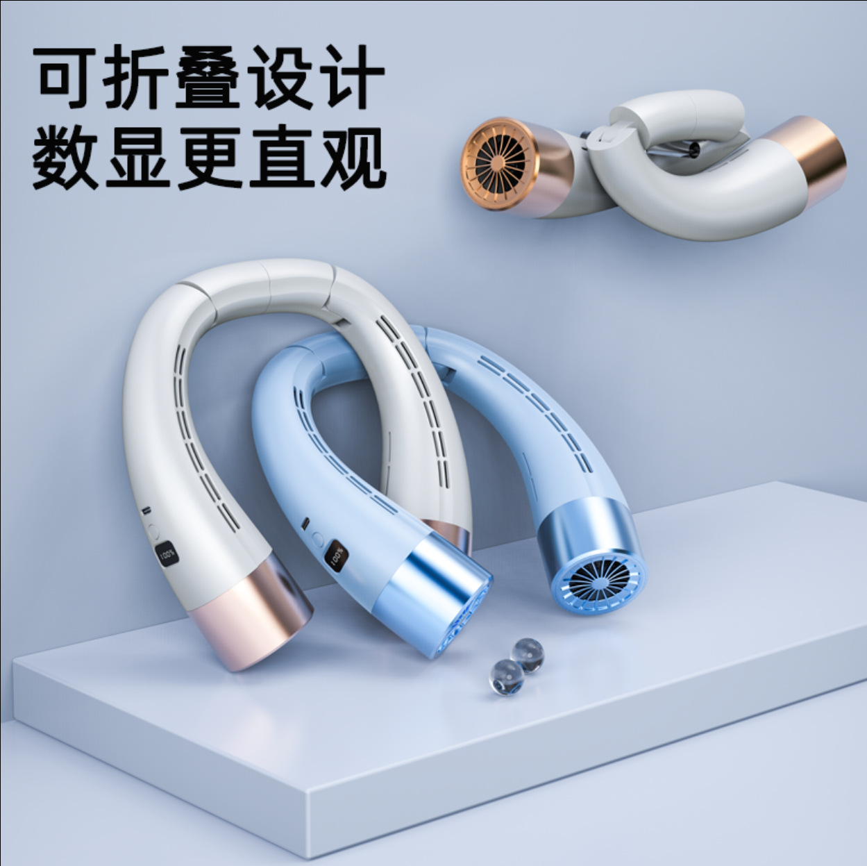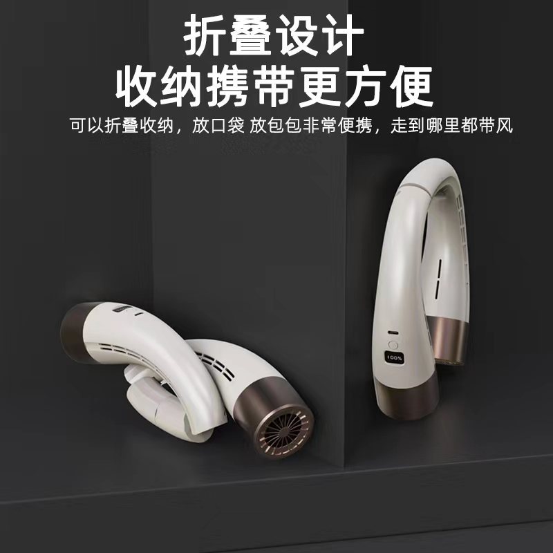 2023跨境新款挂脖小风扇折叠式便携USB迷你风扇静音无叶挂脖风扇
