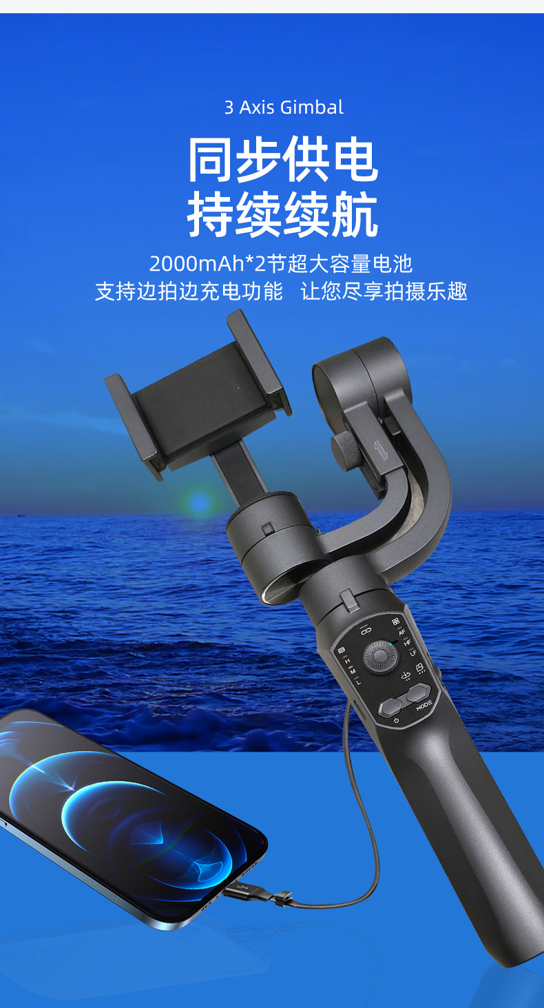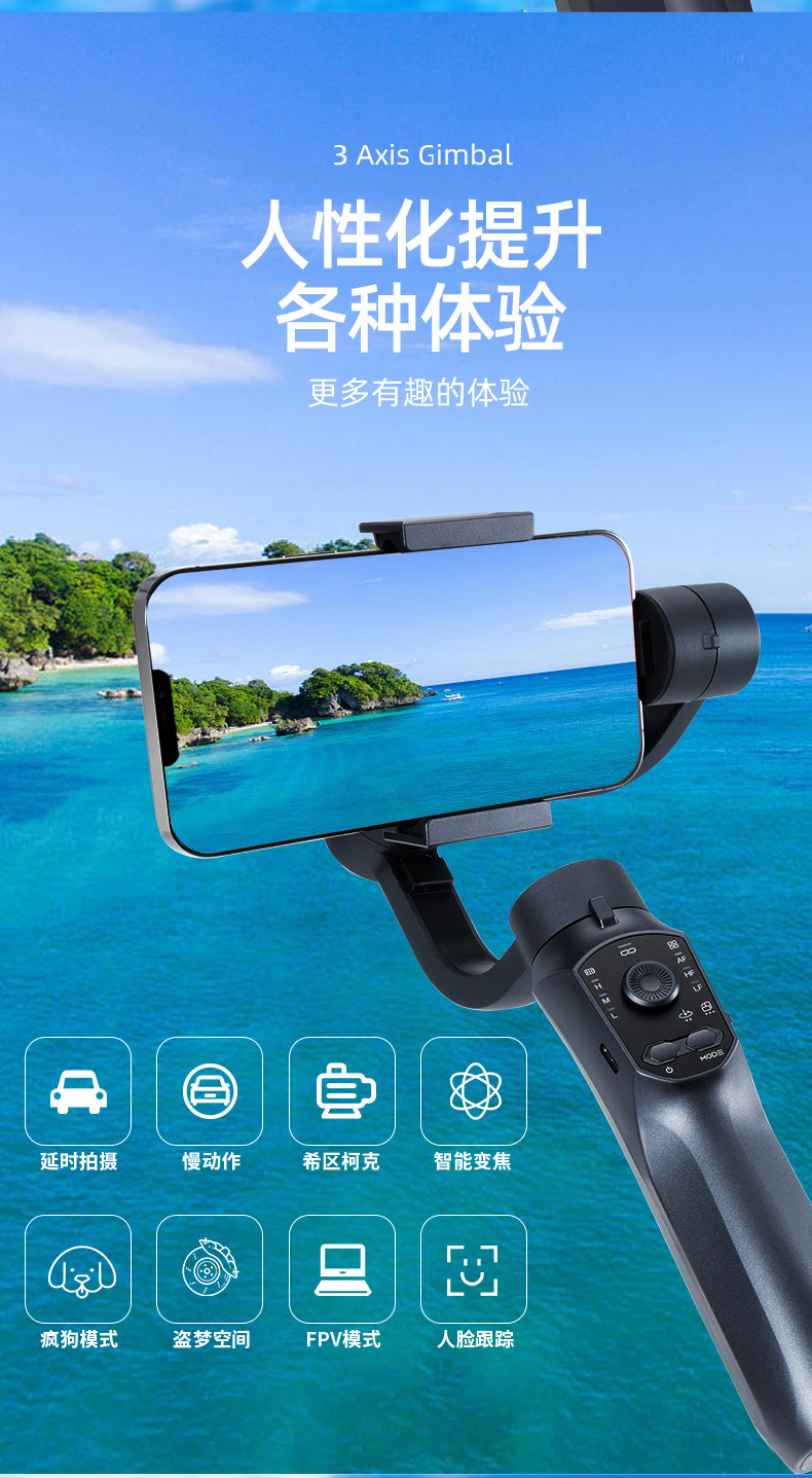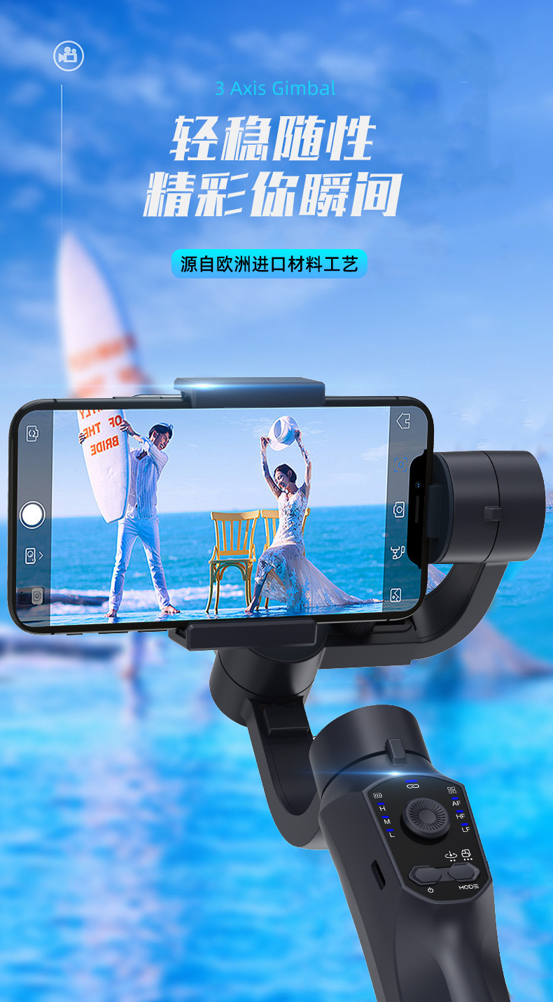 跨境新品手机三轴稳定器手持云台智能跟拍防抖平衡稳拍三脚架摄影