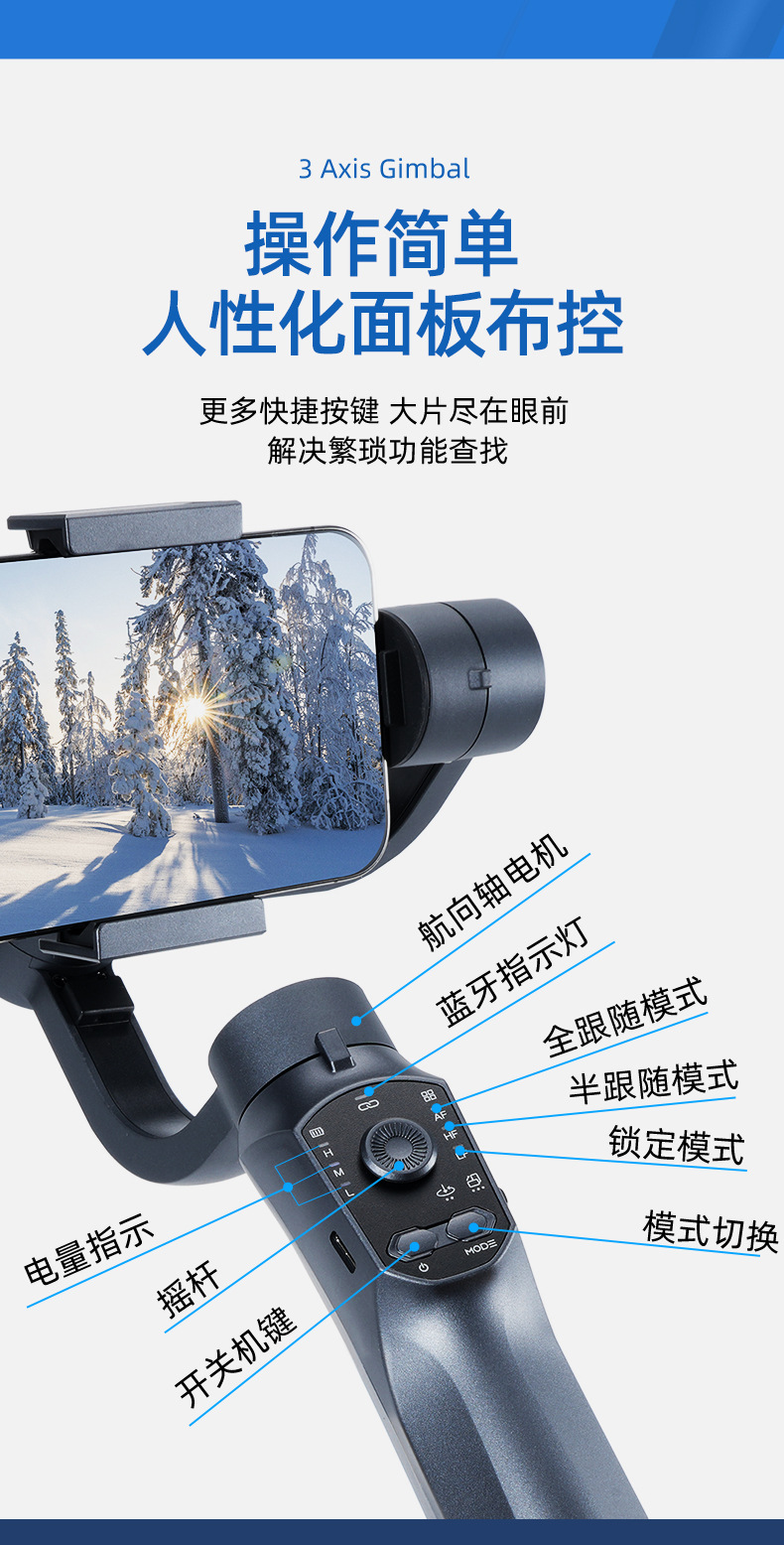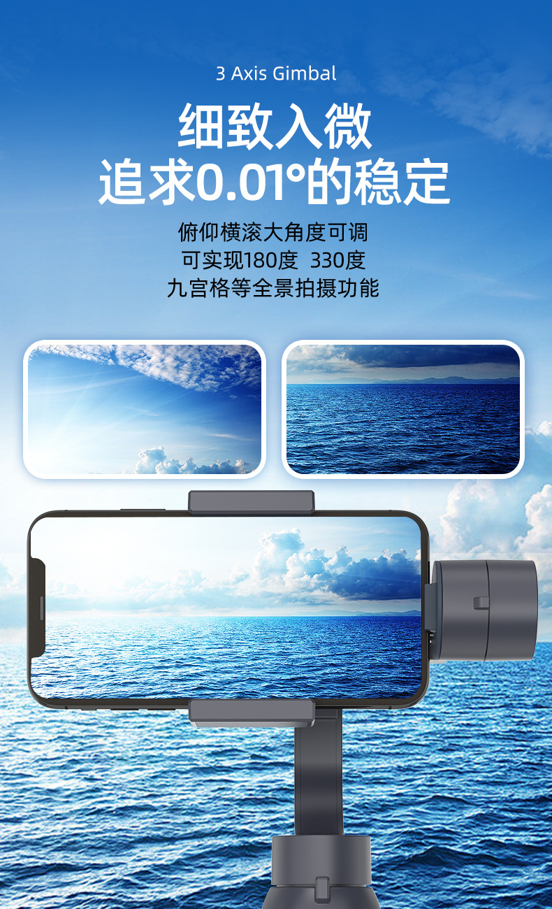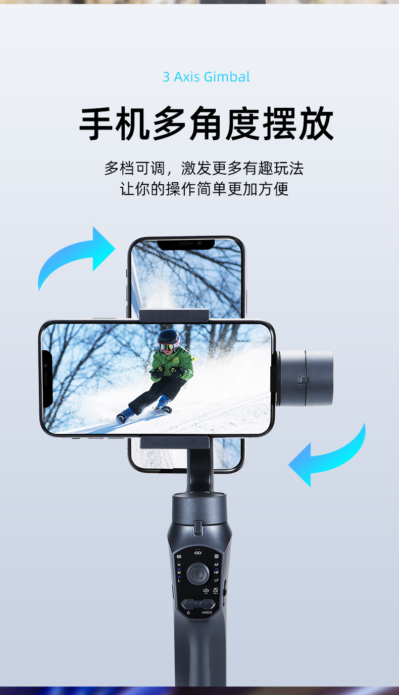 跨境新品手机三轴稳定器手持云台智能跟拍防抖平衡稳拍三脚架摄影