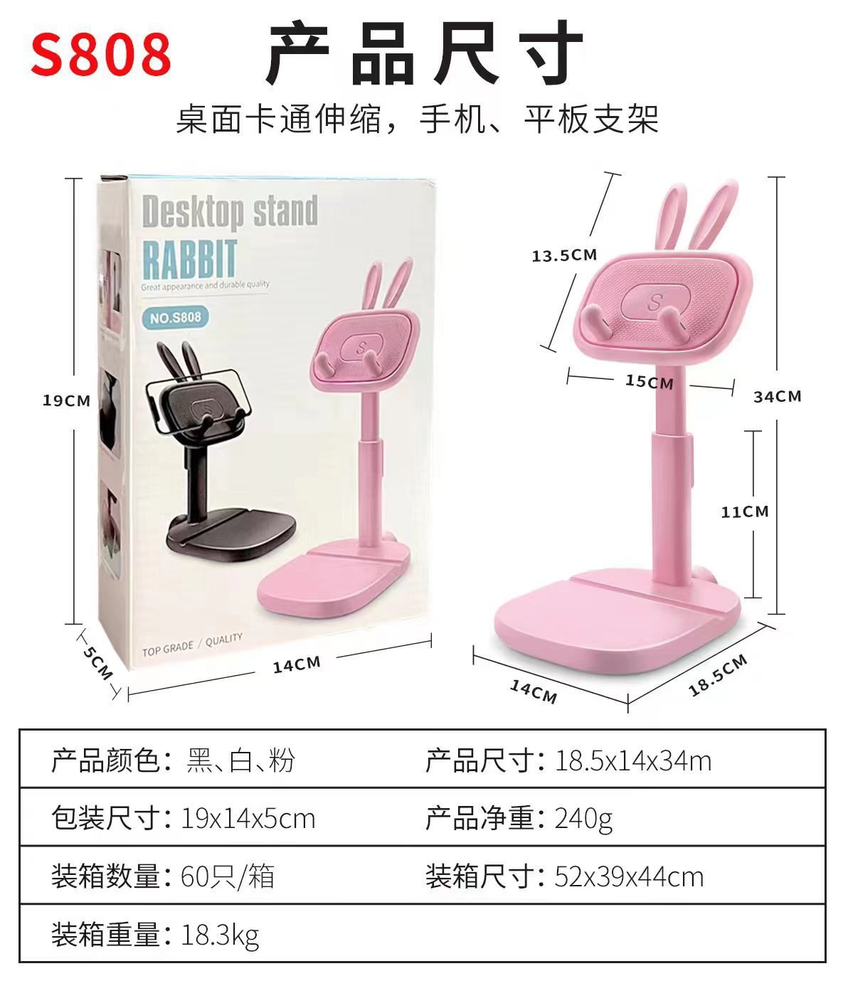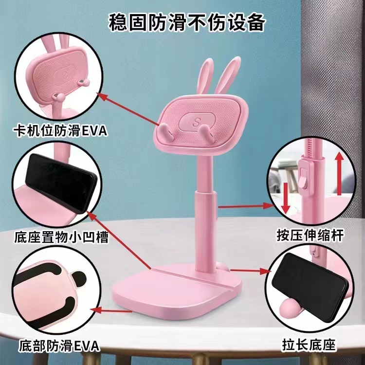 新款兔子卡通懒人手机平板支架通用多用多功能桌面支架可伸缩批发