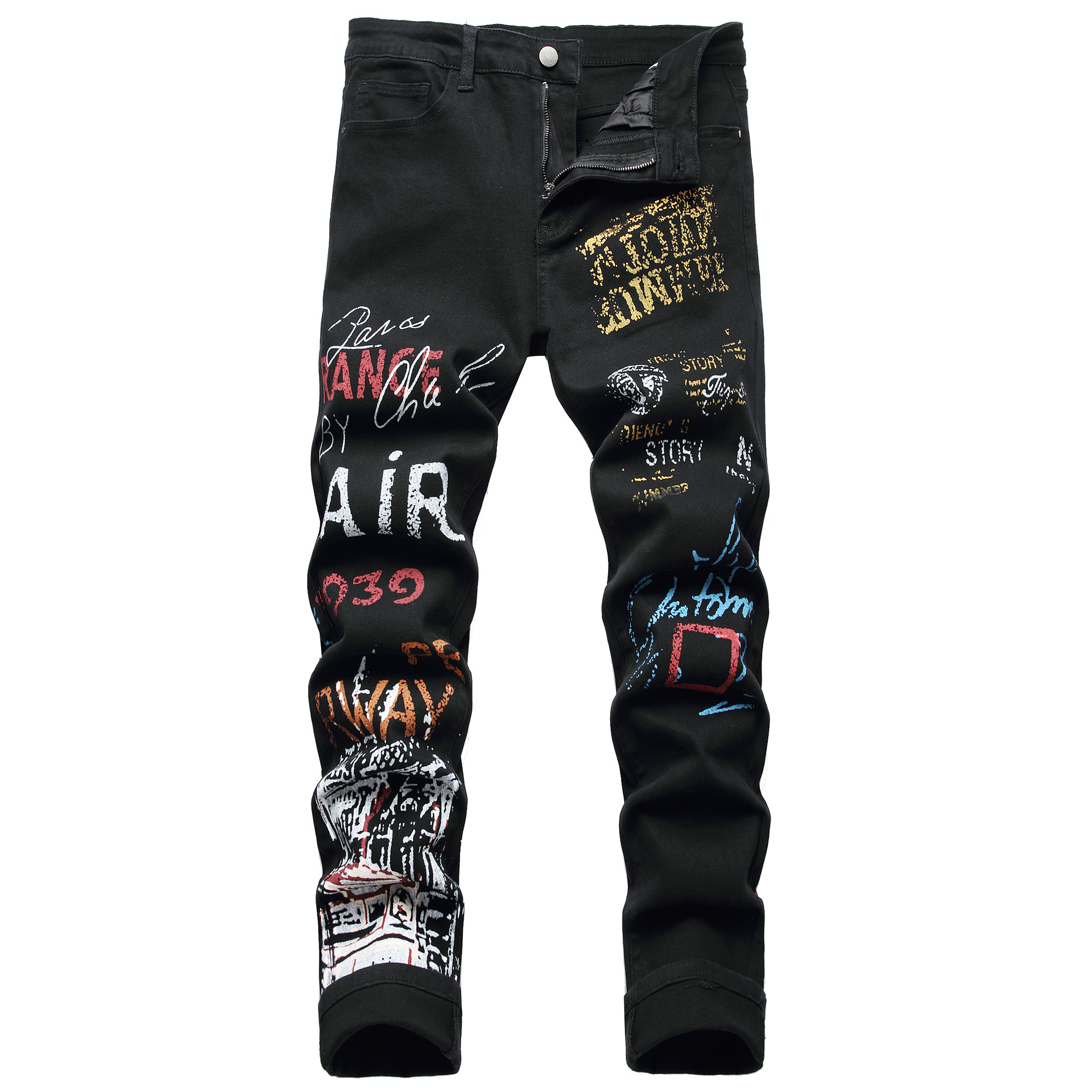 跨境印花男装弹力长裤亚马逊修身花裤 5601 5608