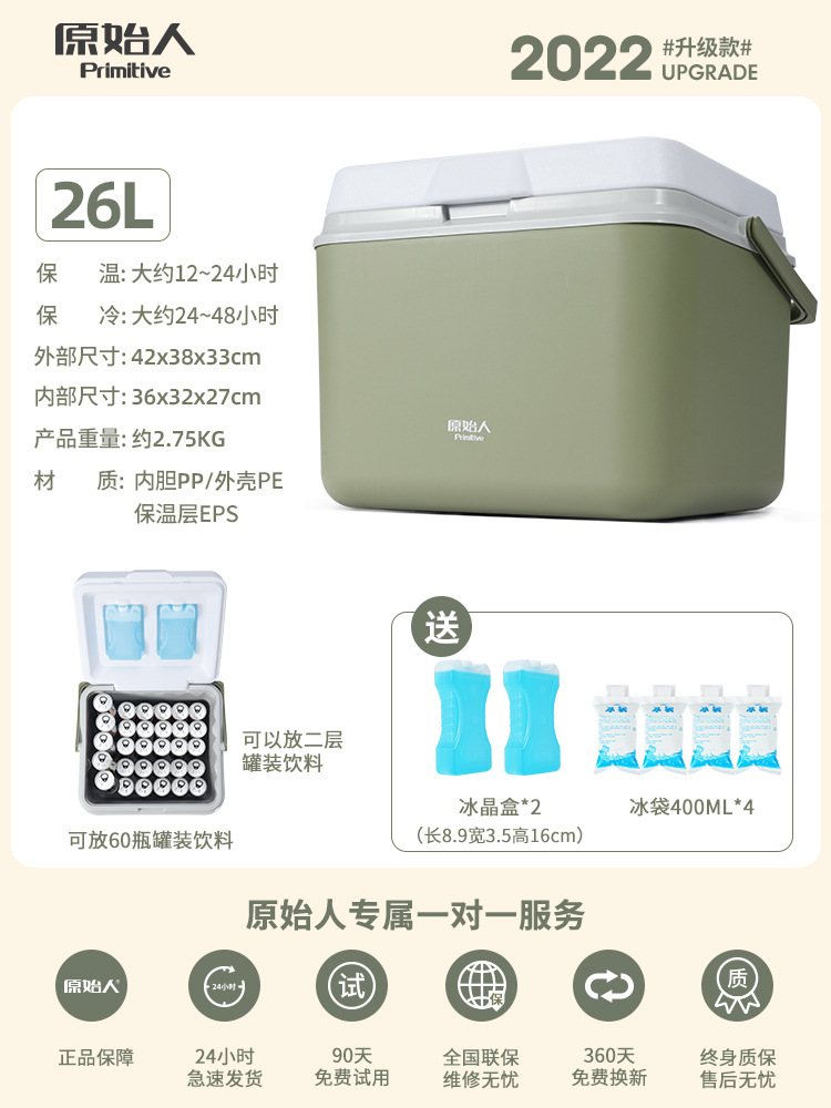 原始人保温箱冰块冷藏箱户外露营旅行车载冰桶摆摊钓鱼小型便携箱
