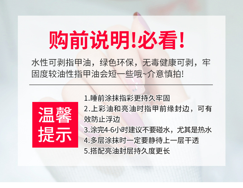 可剥水性指甲油可撕拉快干免考无异味学生指甲油批发跨境专供