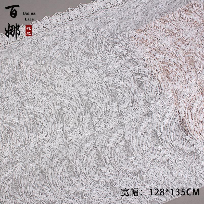 bai na lace white mesh embroidered fabric full of plant high-grade embroidered cloth clothing gauze skirt accessories in stock