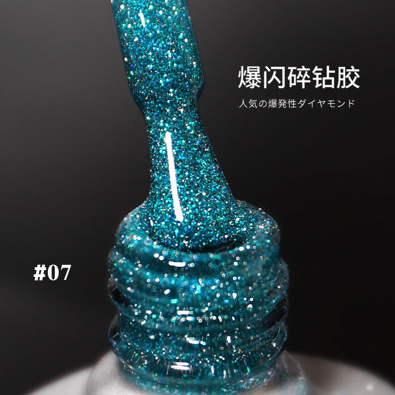 外贸专供爆闪碎钻粉甲油胶新款流行亮片超闪亮光疗胶美甲店可用