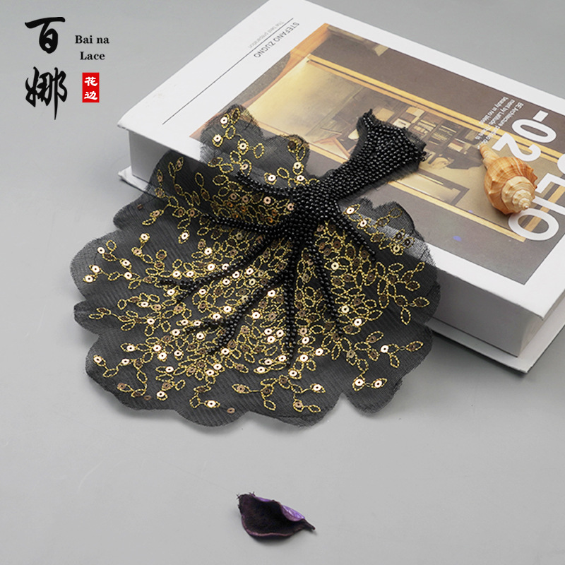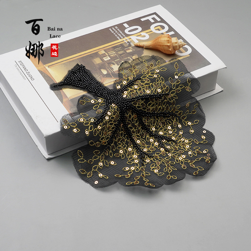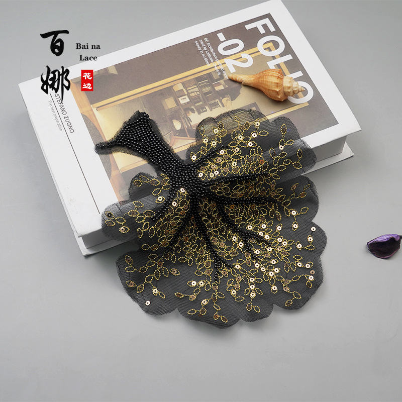 百娜电脑刺绣花边散珠假树纱巾网底胸花布贴牛仔后背补丁外贸服装