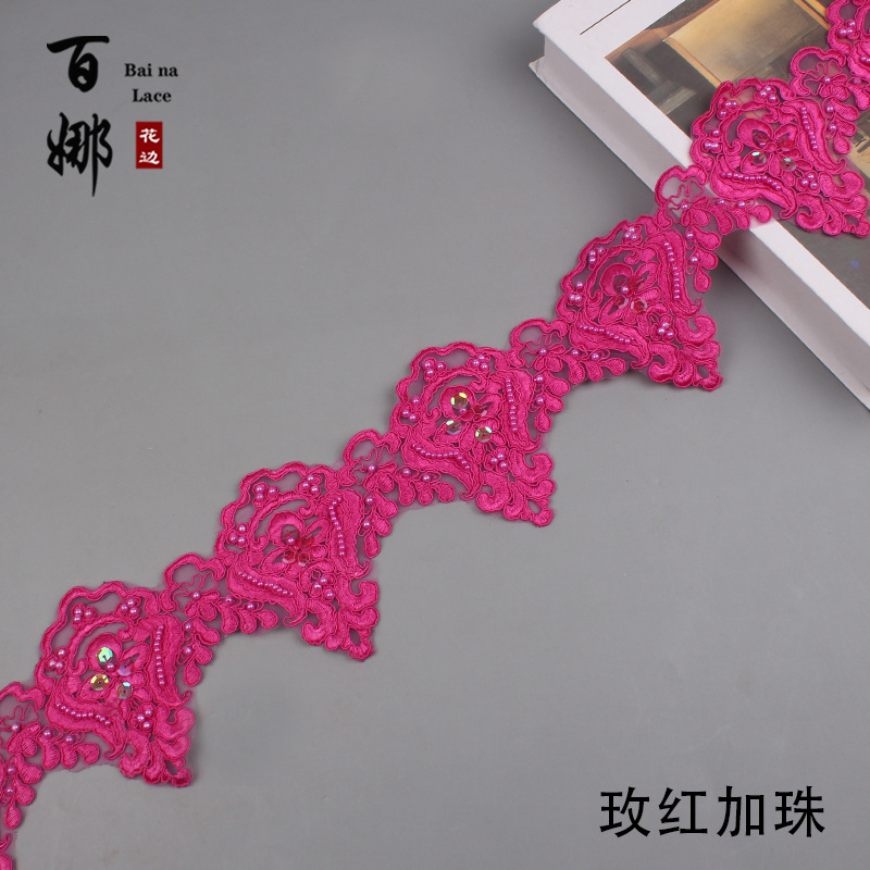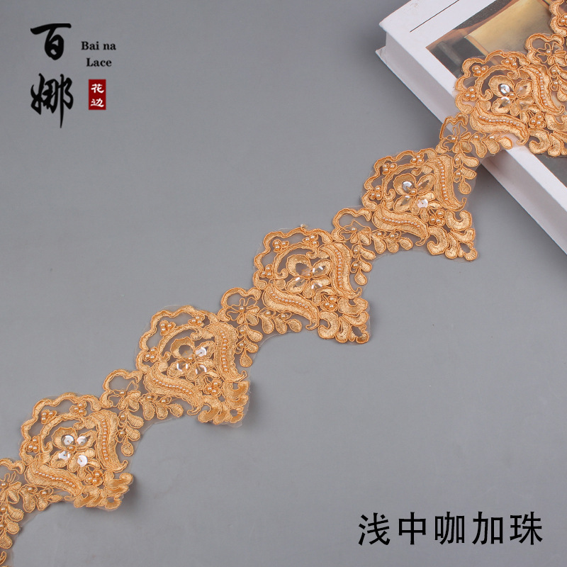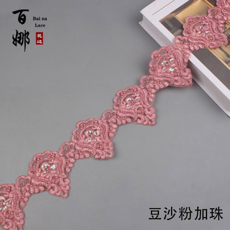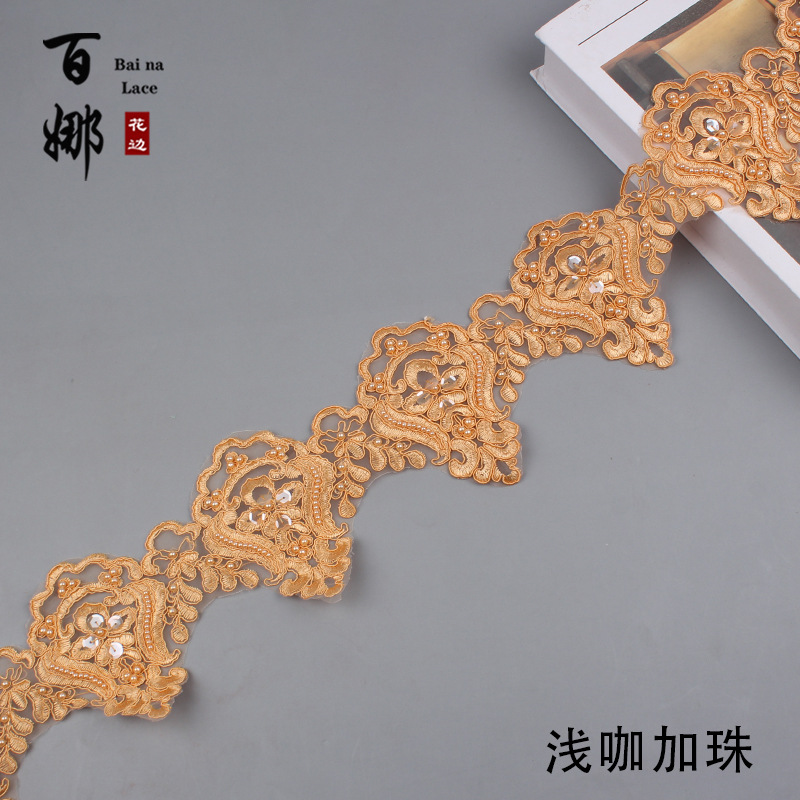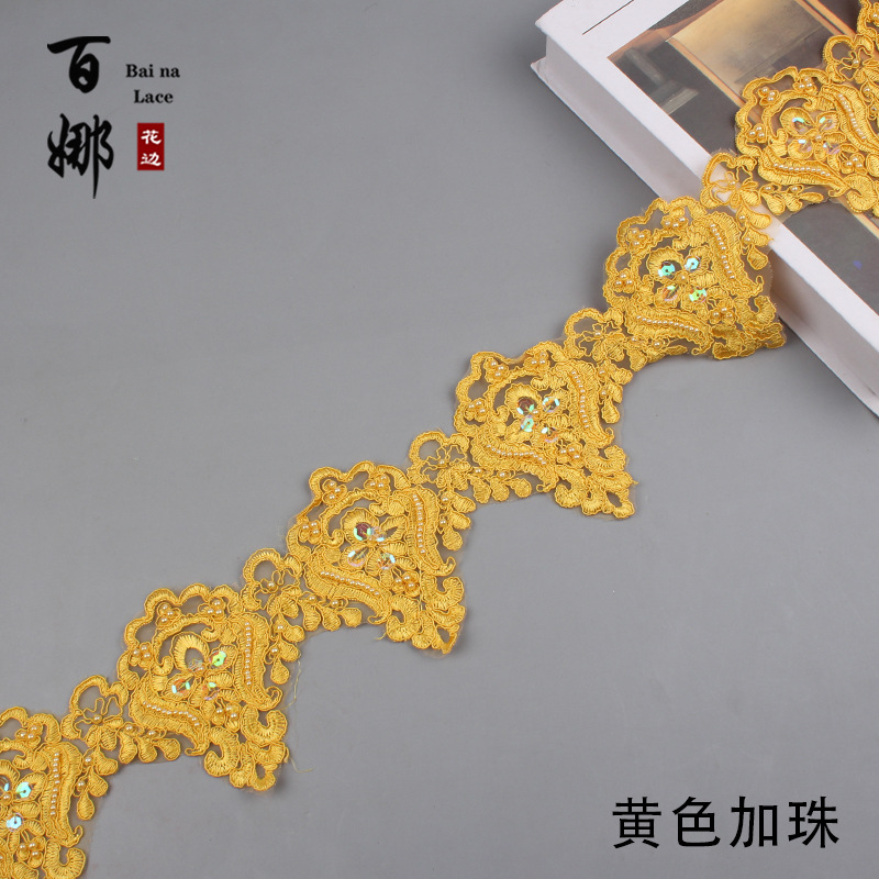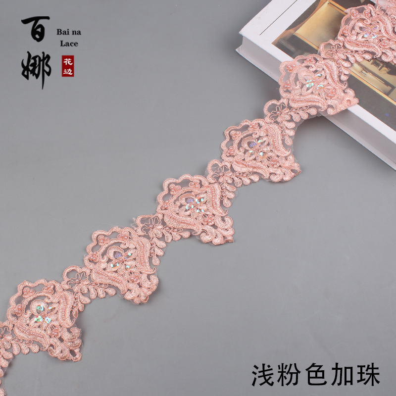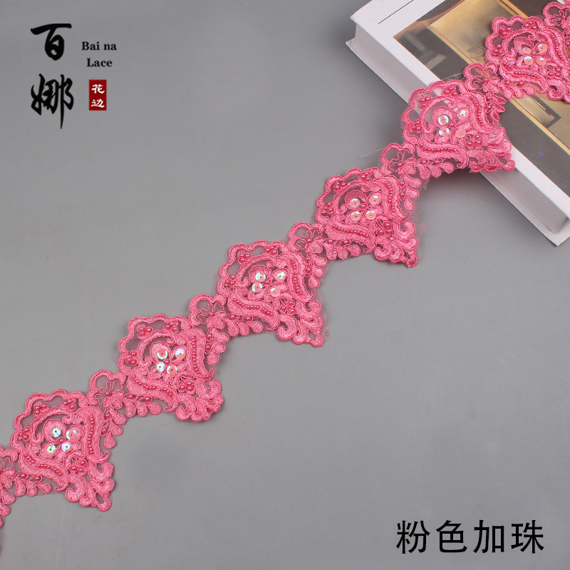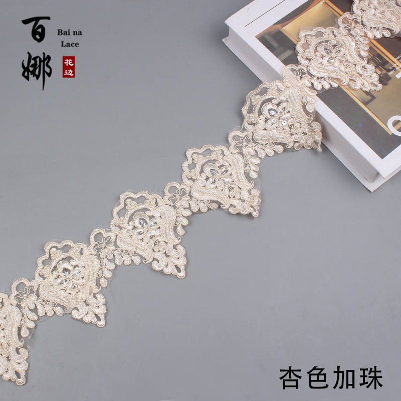 百娜花边经典款现货蕾丝车骨加珠家纺床上用品花边桌布裙摆服装辅