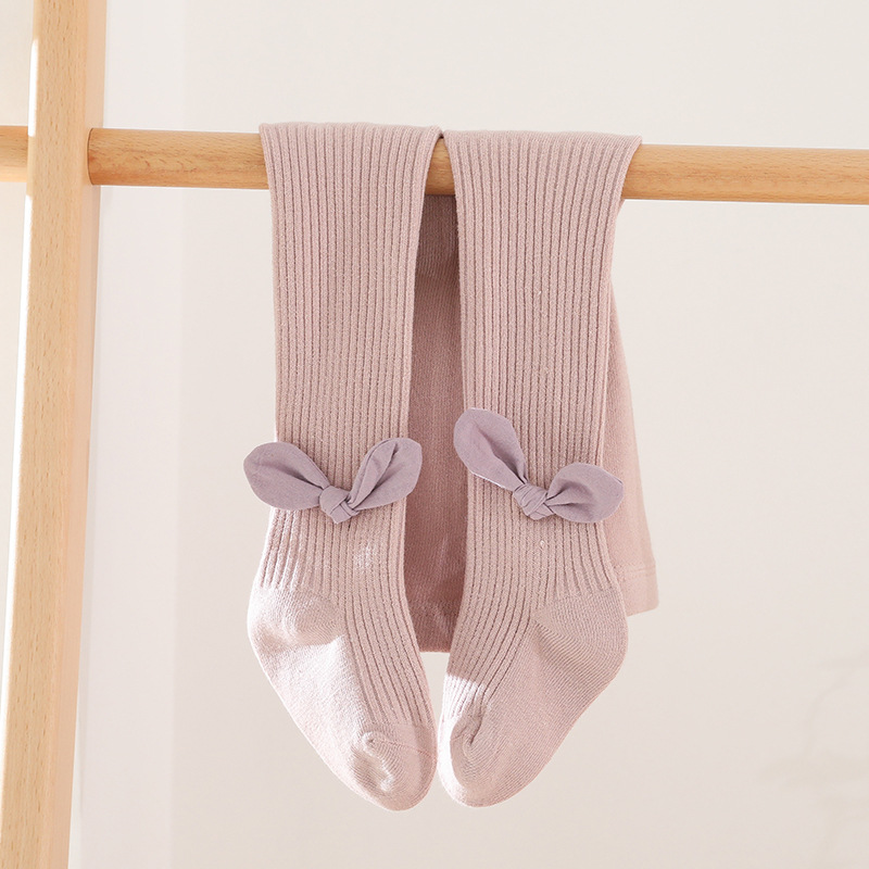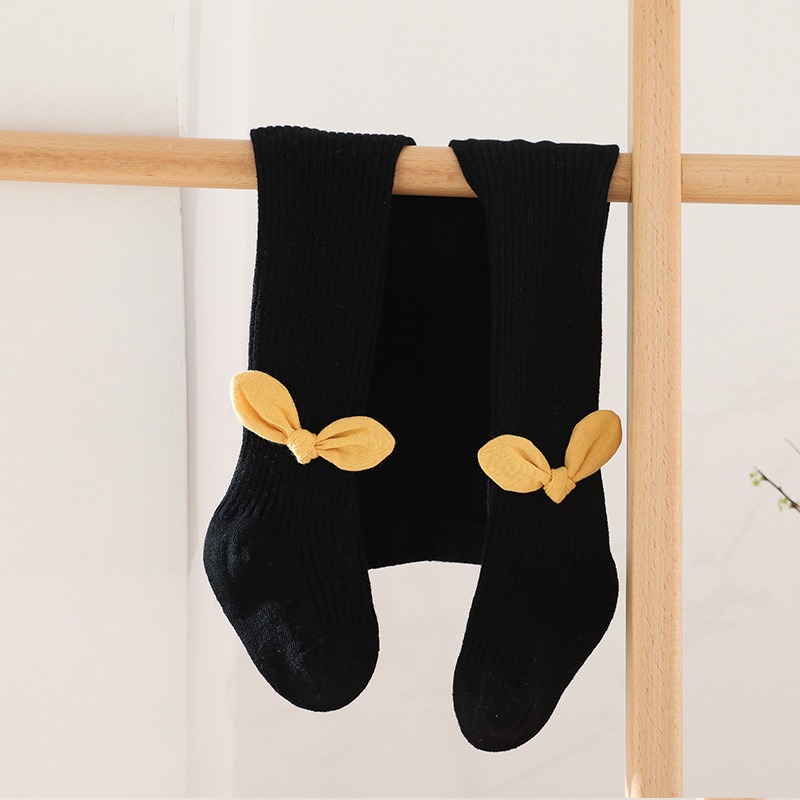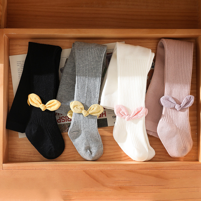 儿童连裤袜春秋蝴蝶结婴儿连脚宝宝打底袜子针织白色女童打底裤