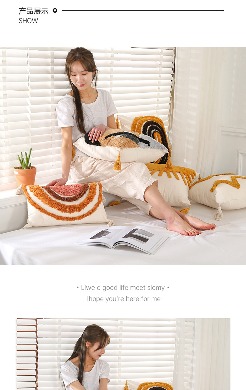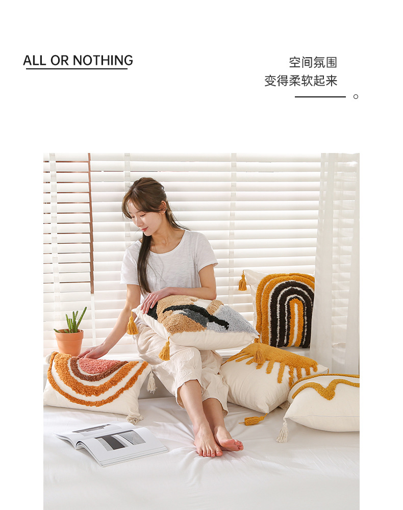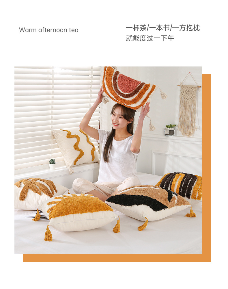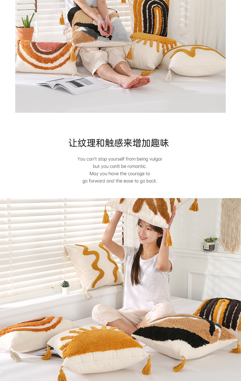 ins 簇绒抱枕套波西米亚风民宿装饰腰靠轻奢飘窗靠垫沙发流苏靠枕