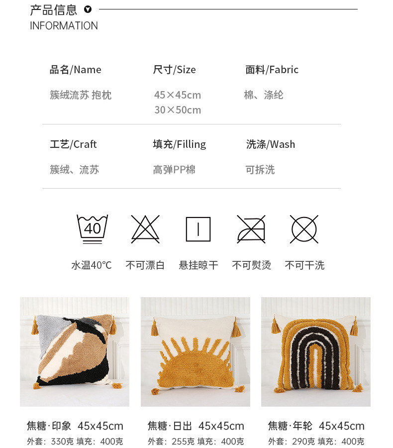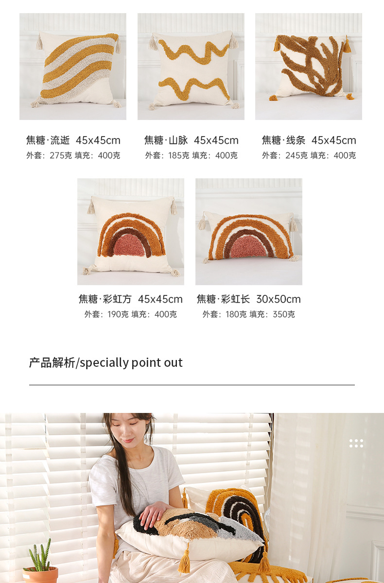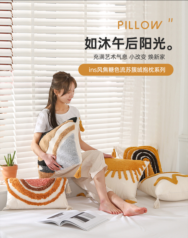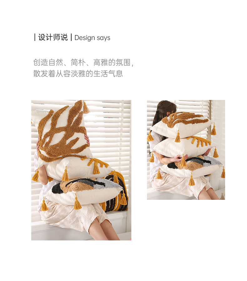 ins 簇绒抱枕套波西米亚风民宿装饰腰靠轻奢飘窗靠垫沙发流苏靠枕