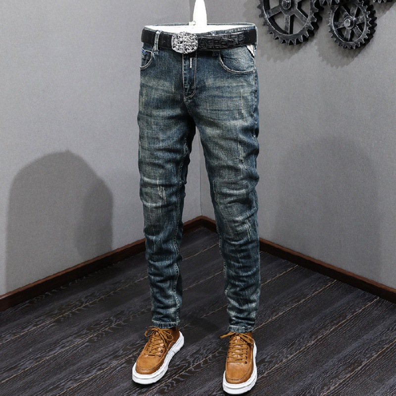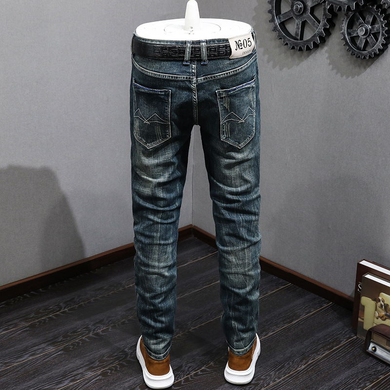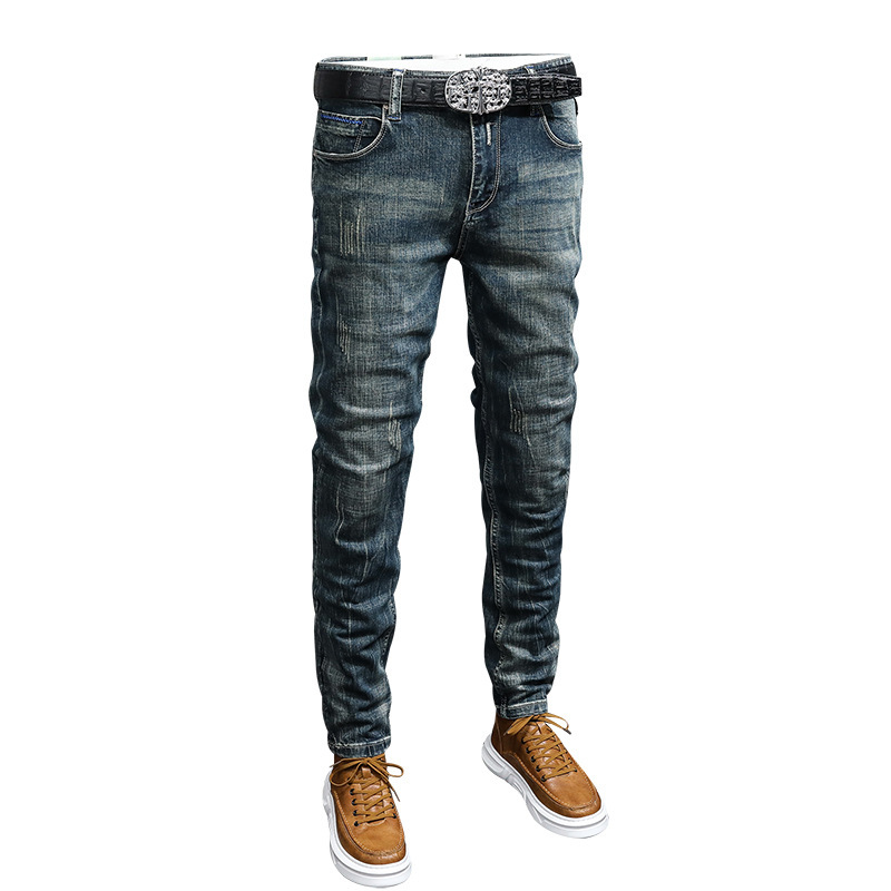 美式复古破洞刮烂牛仔裤男夏季薄款修身小脚韩版潮牌高端休闲长裤