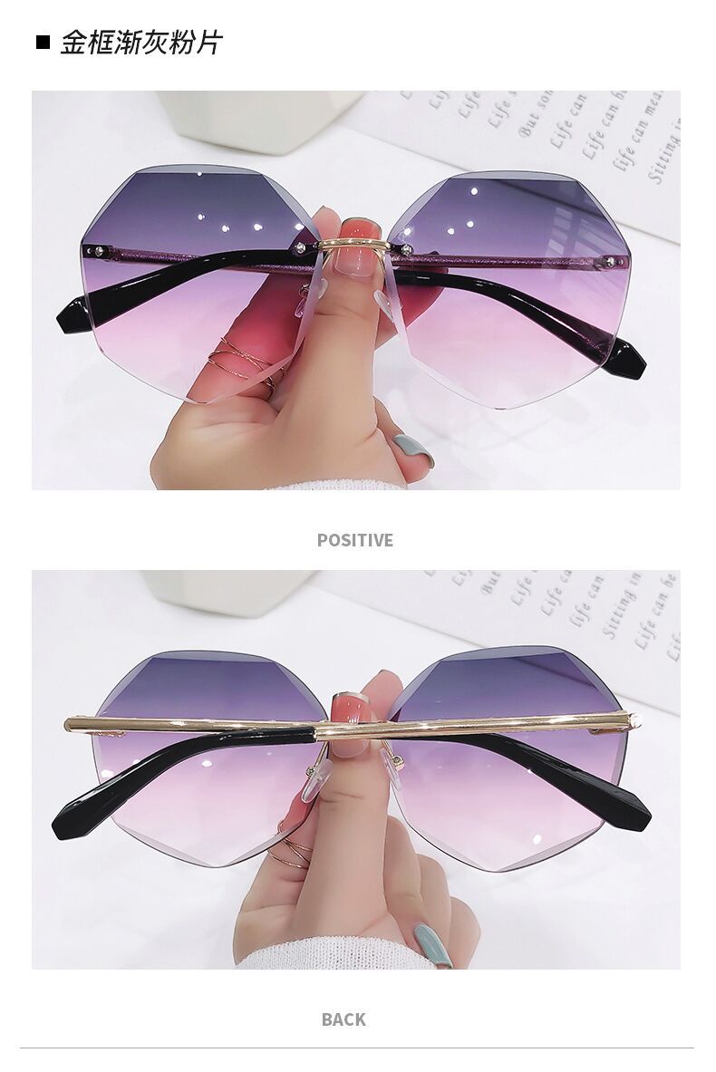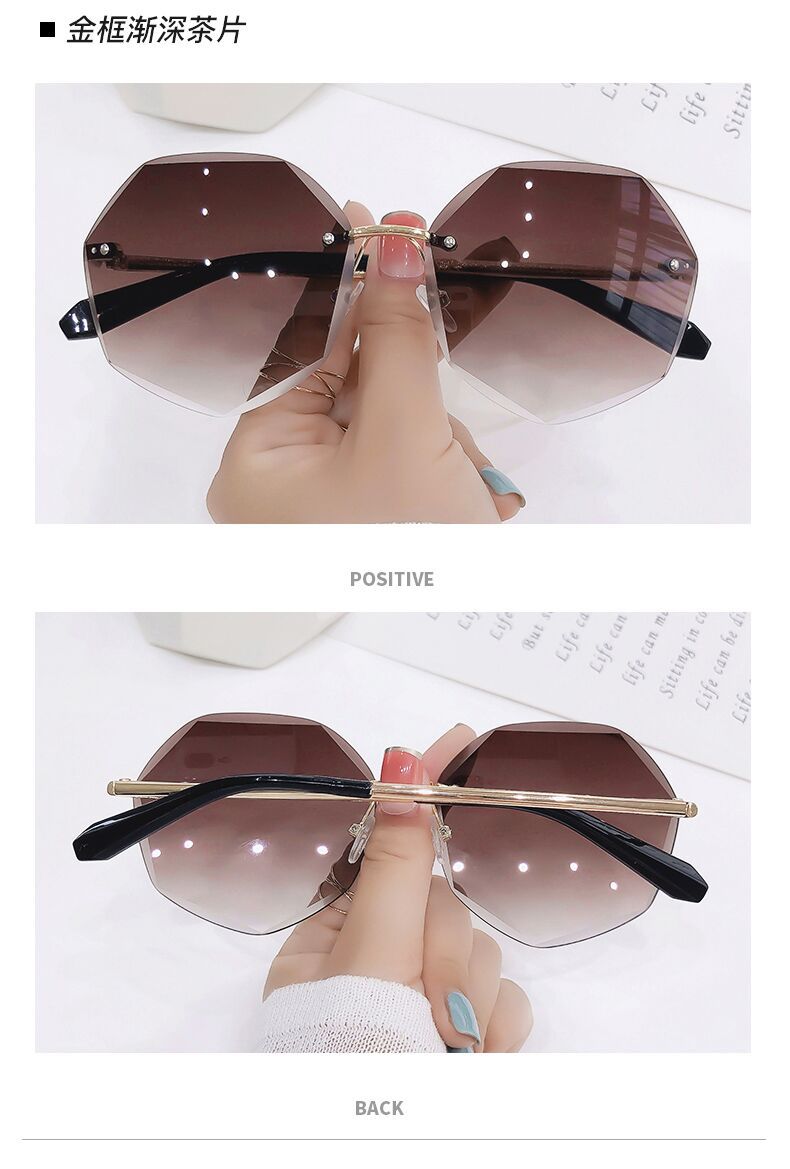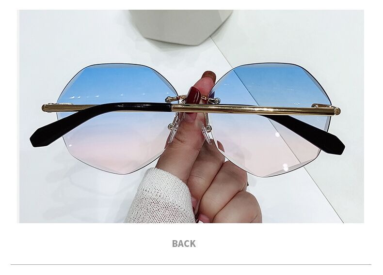 新款金属无框太阳镜欧美潮流眼镜切边墨镜多边形女士太阳眼镜批发