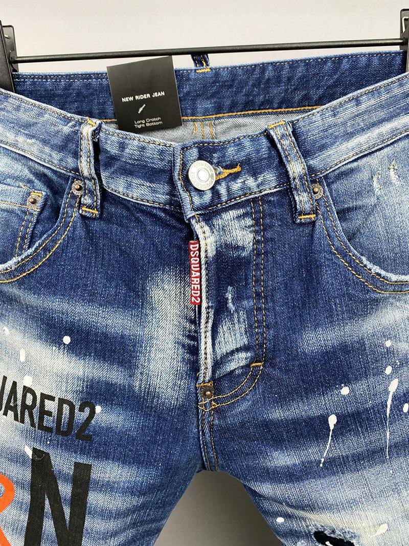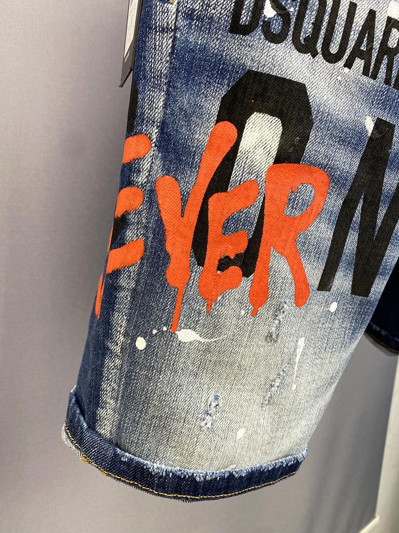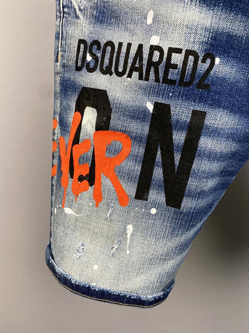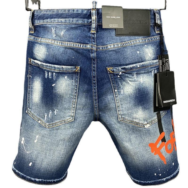DSQ男士中裤时尚印花五分裤修身棉弹合体短裤男欧美男装水印牛仔
