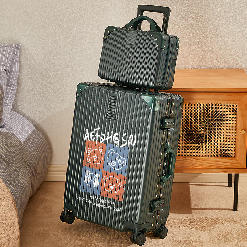 24寸铝框拉杆箱万向轮旅行箱女行李箱复古20寸ins学生密码箱批发