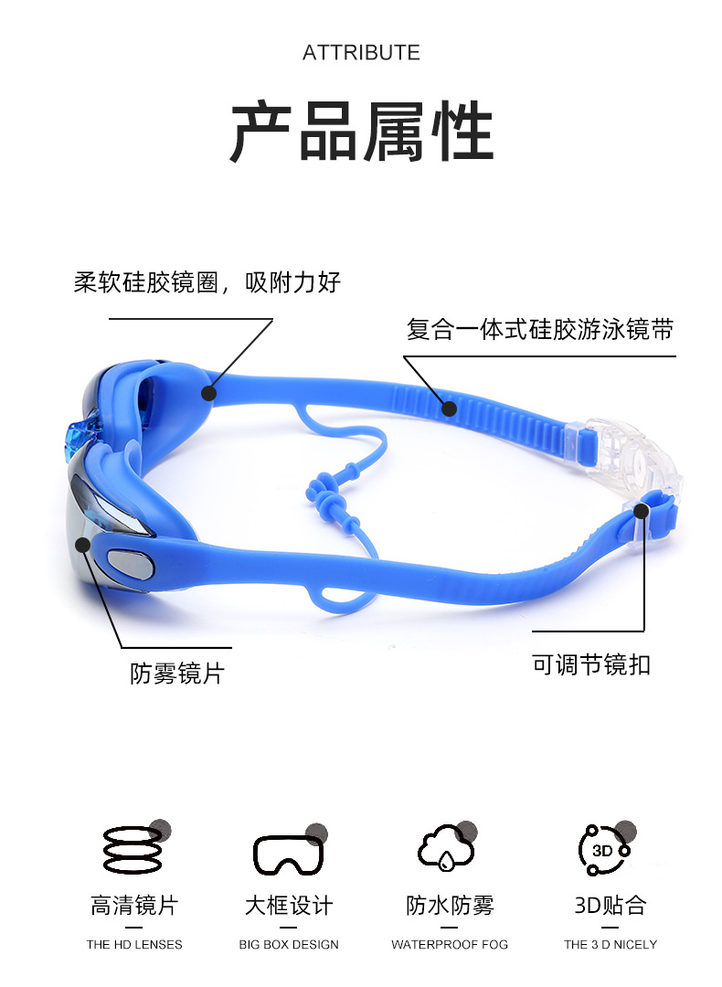 厂家直销泳镜高清防水防雾男女大框电镀成人泳镜游泳护目眼镜批发