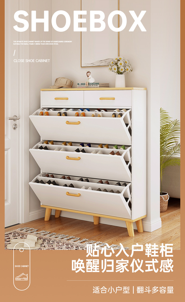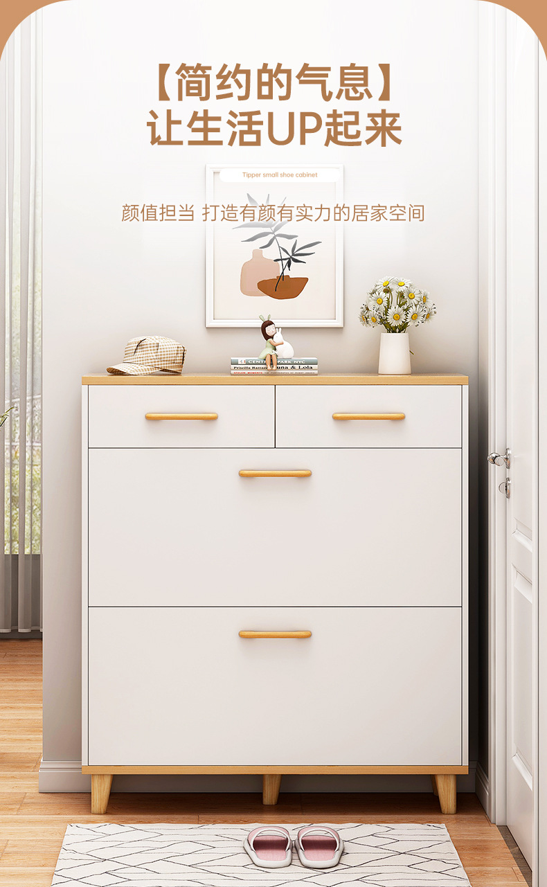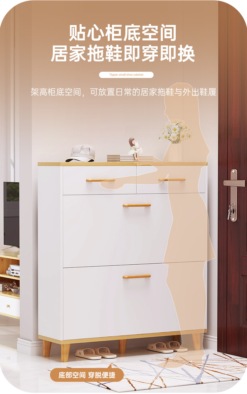 入户玄关柜大容量极简家用门口鞋柜超薄翻斗带门客厅阳台极