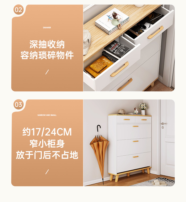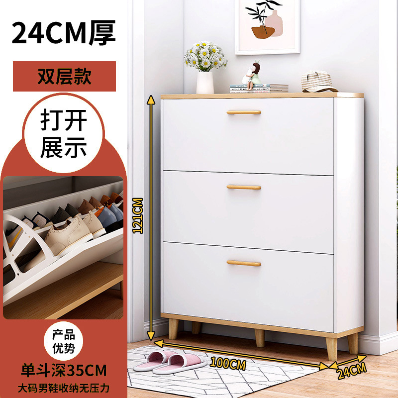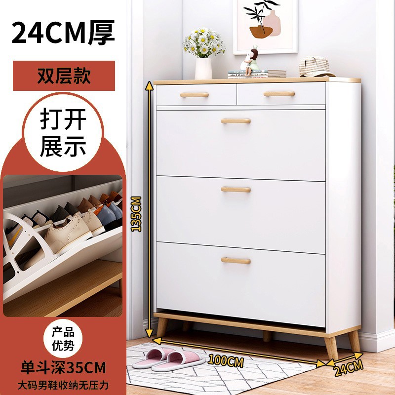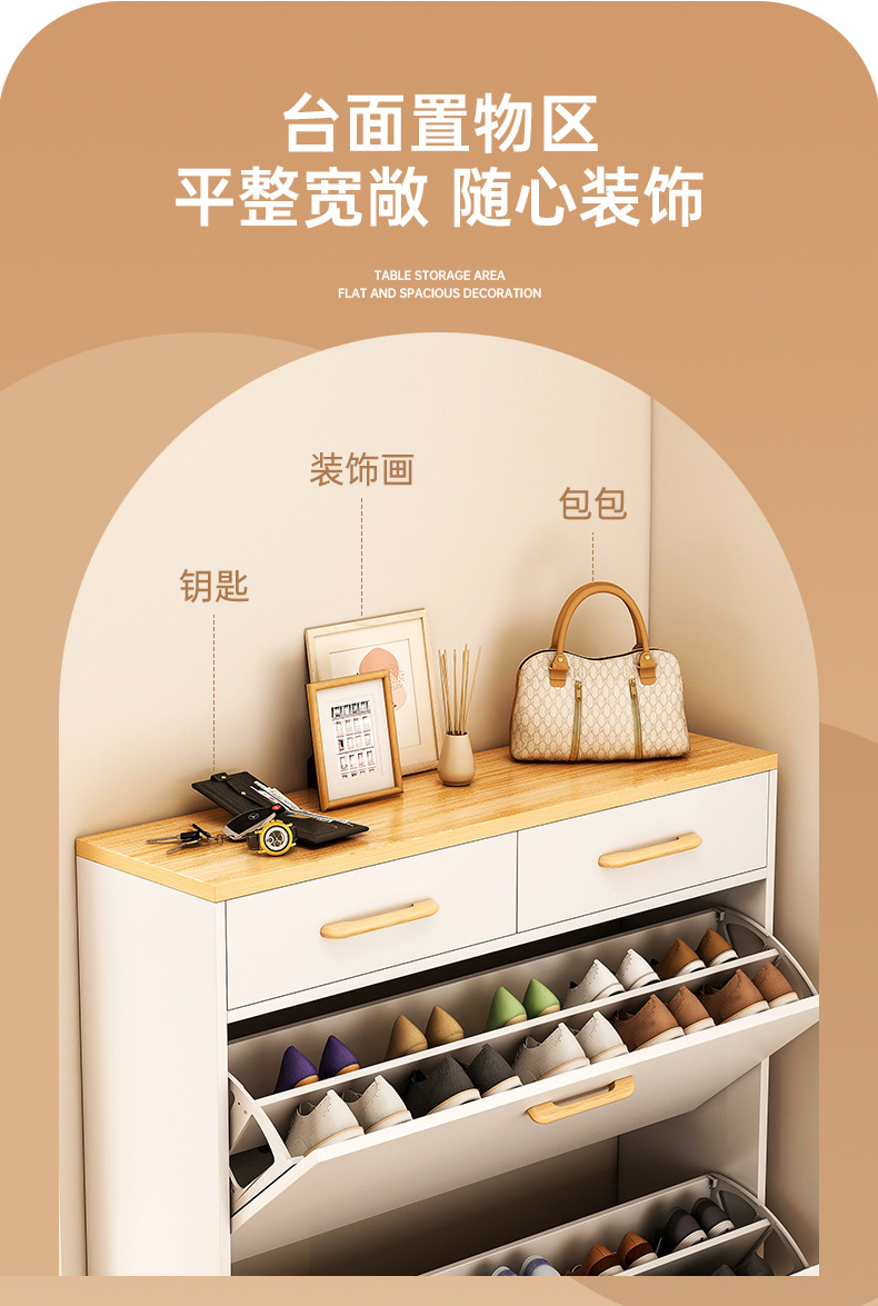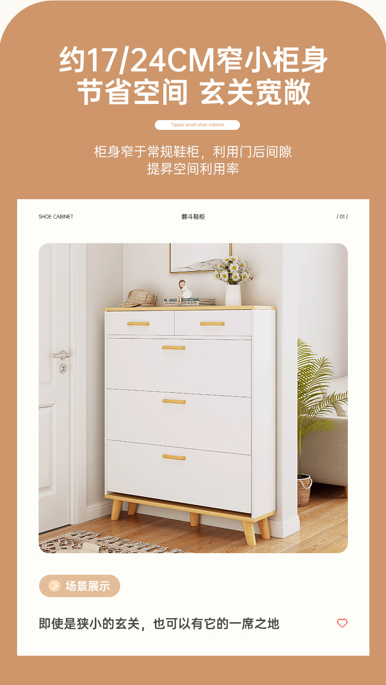 入户玄关柜大容量极简家用门口鞋柜超薄翻斗带门客厅阳台极