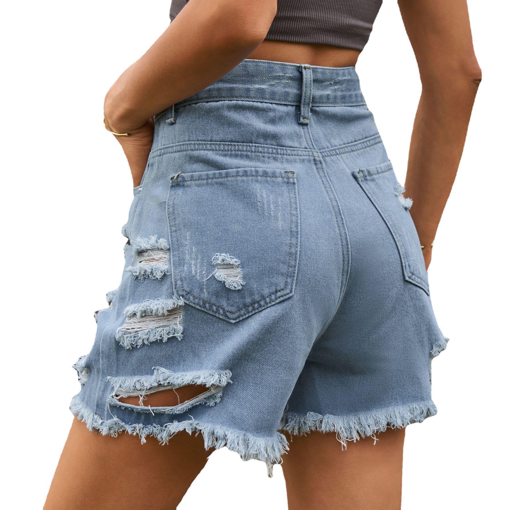 欧美跨境外贸女装亚马逊新款不规则撕烂毛边破洞wish牛仔短裤热裤