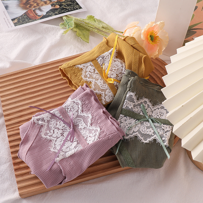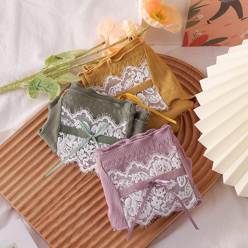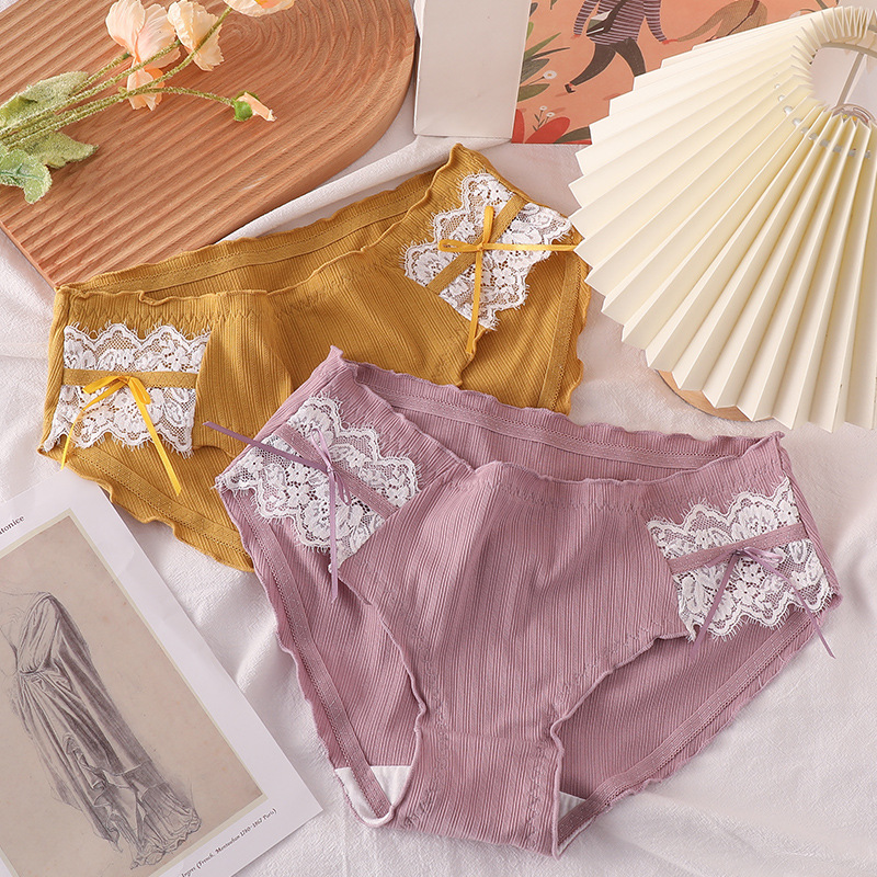 内裤女大码胖妹妹200斤日系甜美少女荷叶边中腰三角裤头批发新款