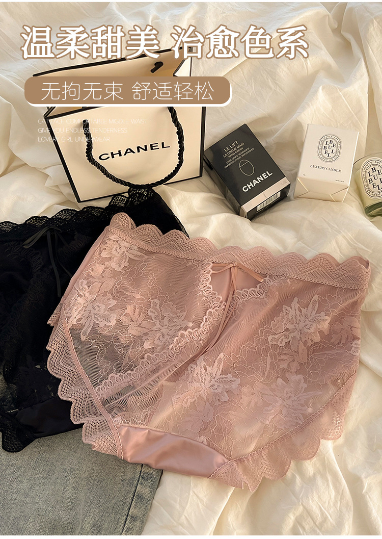 女士内裤女中腰性感纯欲风透气无痕日系新款辣妹蕾丝三角裤头