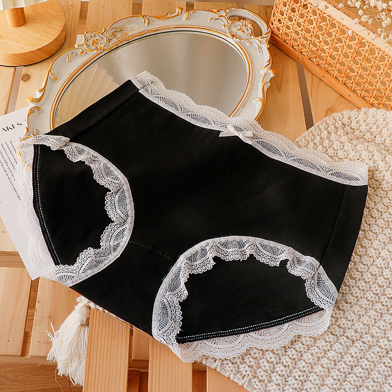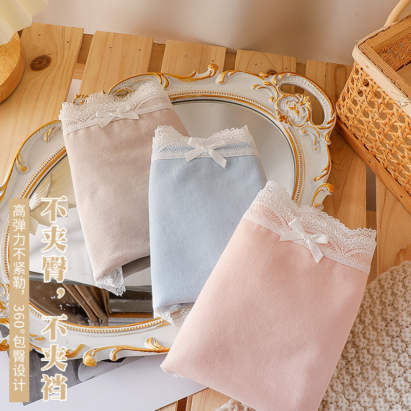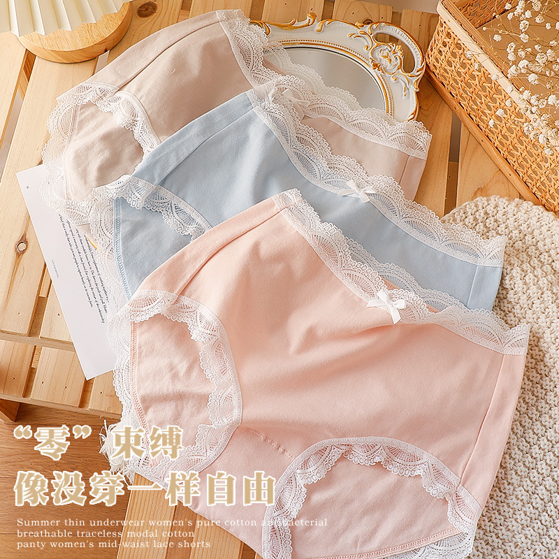 大码内裤女棉高腰胖MM200斤秋款包臀蕾丝边女士三角裤