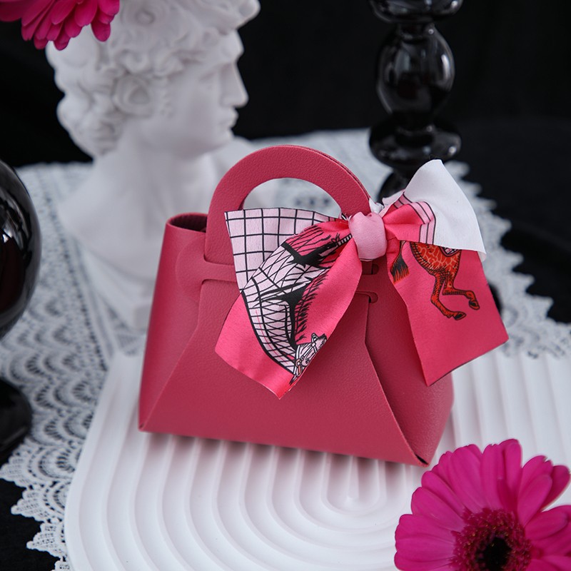 ins风喜糖盒子皮质空盒礼盒包装创意结婚礼喜糖袋手提一体包糖盒