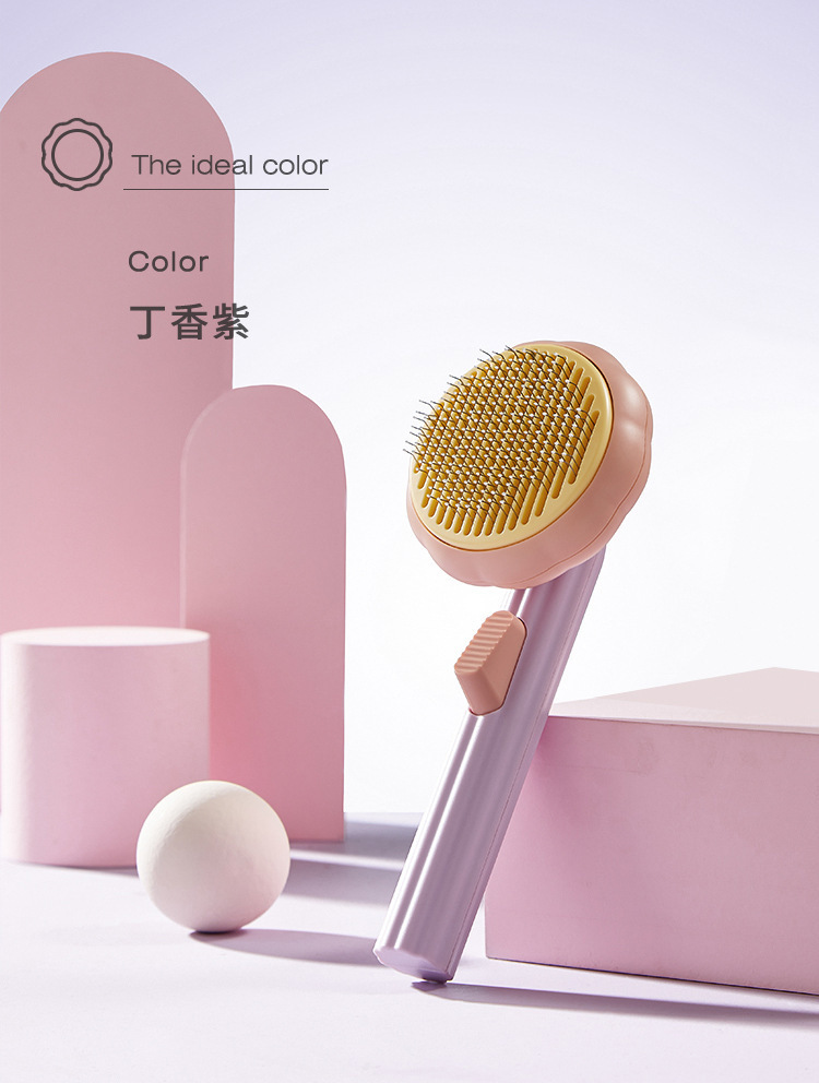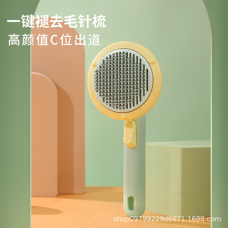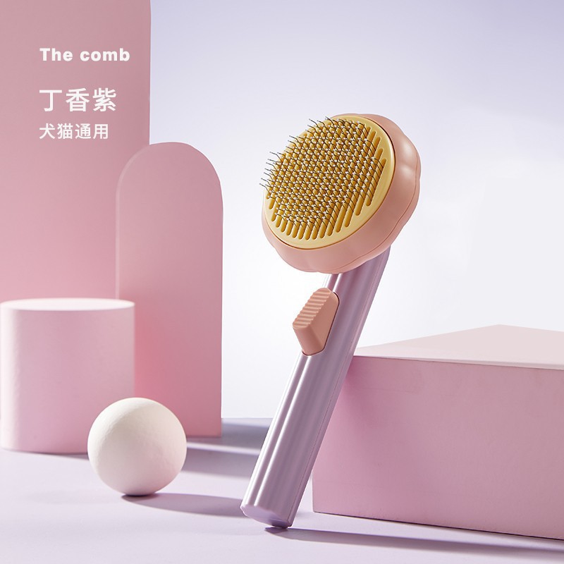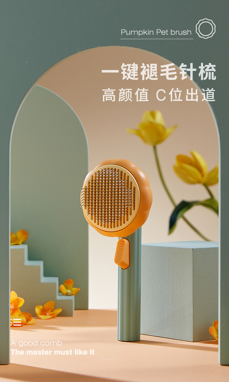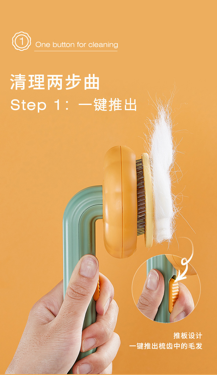 跨境宠物梳子刷子除浮毛梳一键褪毛自洁梳狗狗长短毛开结梳南瓜梳