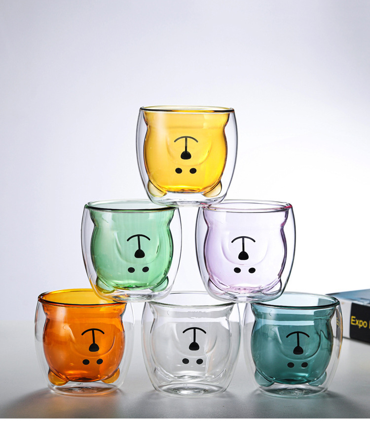 ins风家用双层水杯小熊咖啡杯 可爱动物男女情侣早餐牛奶杯玻璃杯