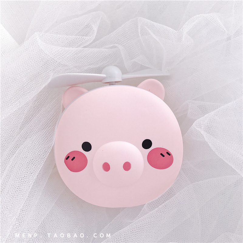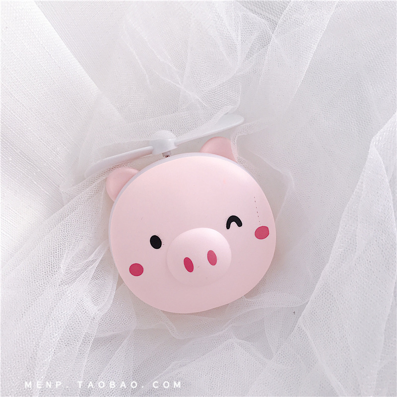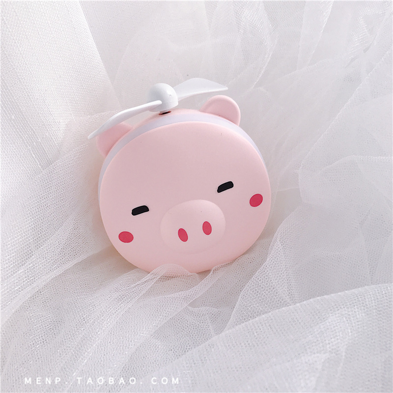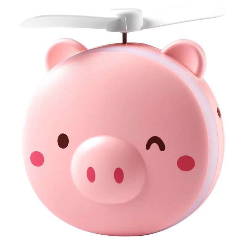 跨境手持式迷你小猪风扇补光灯化妆镜子三合一多功能UBS充电风扇
