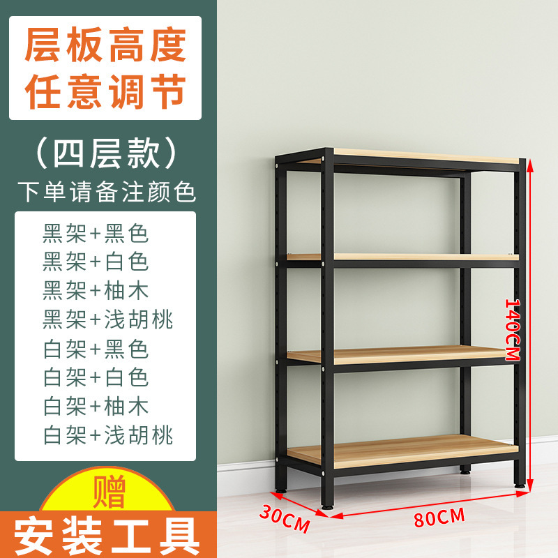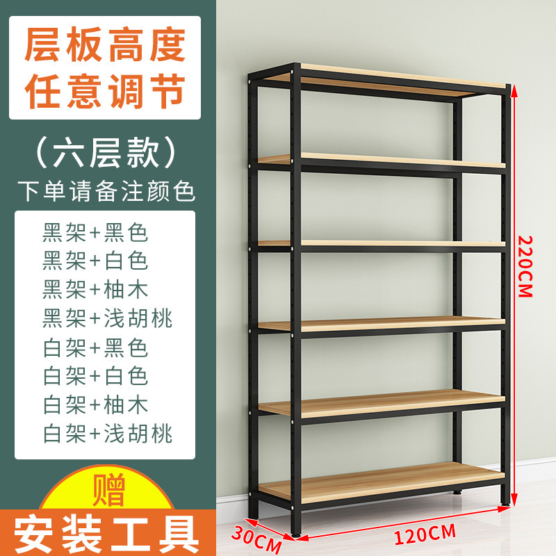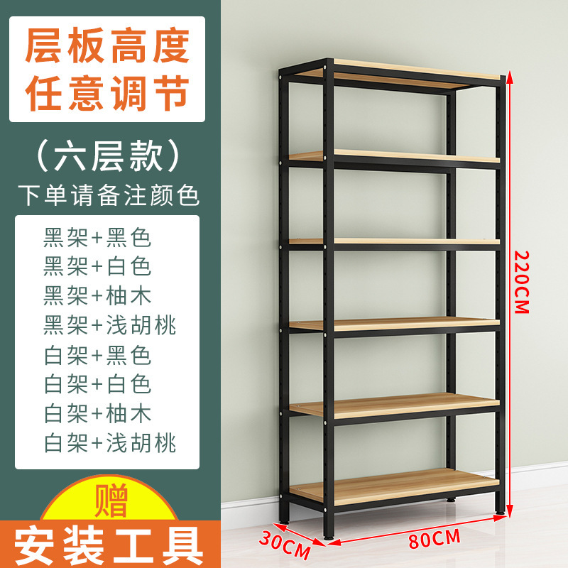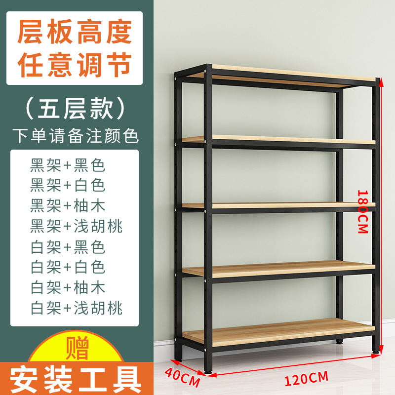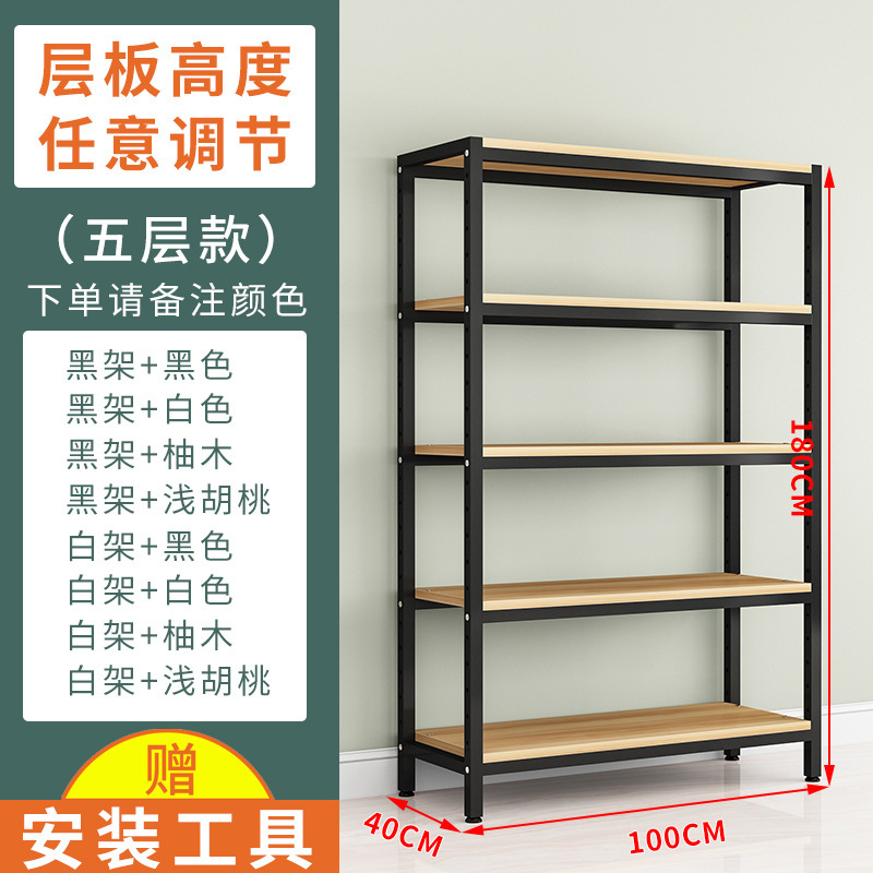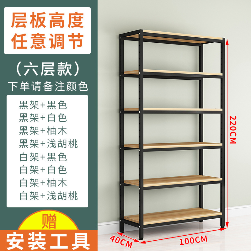 钢木书架置物架厨房储物层架家用收纳落地多层调节铁艺展示架货架