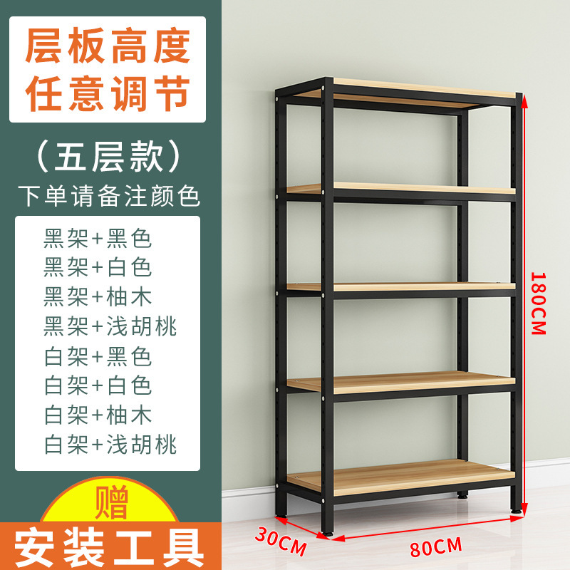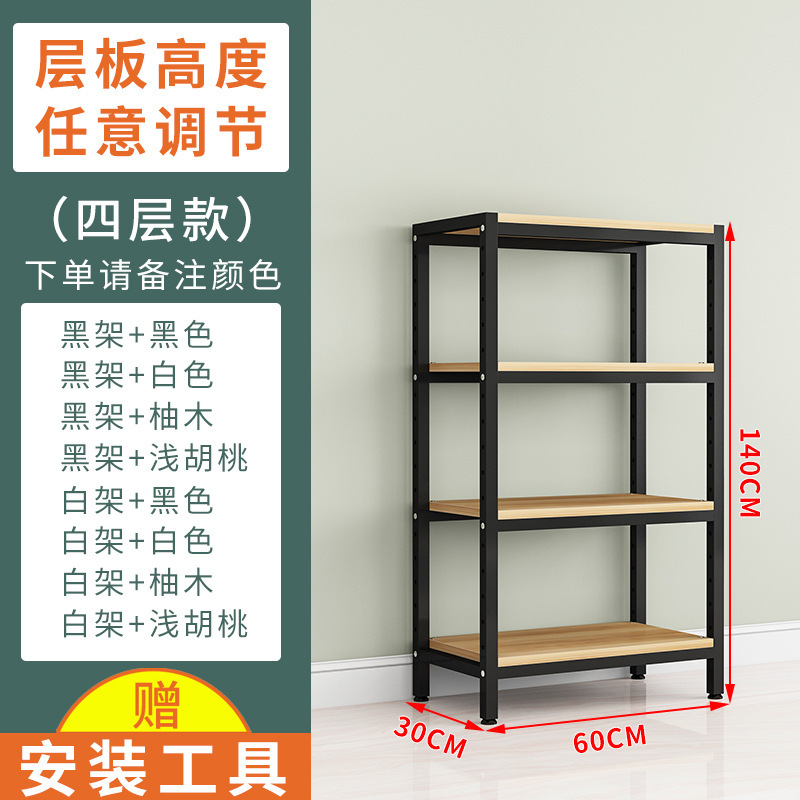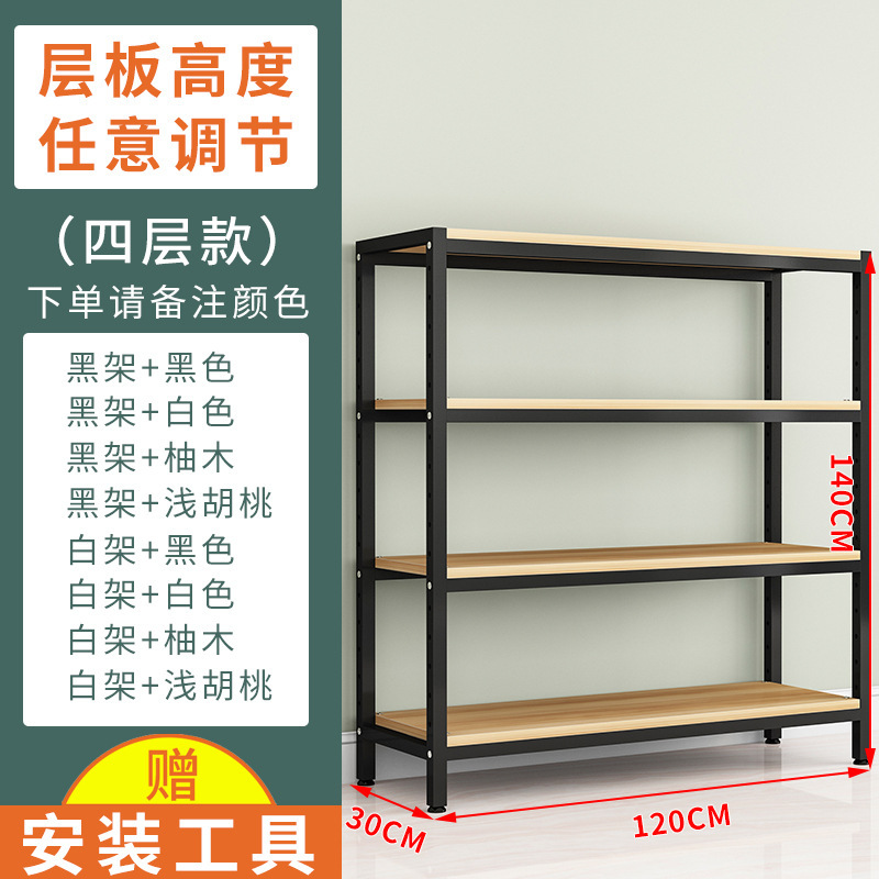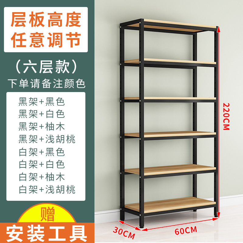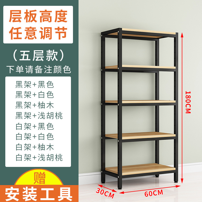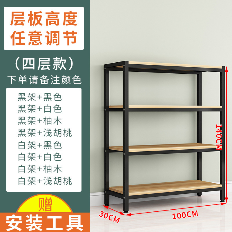 钢木书架置物架厨房储物层架家用收纳落地多层调节铁艺展示架货架