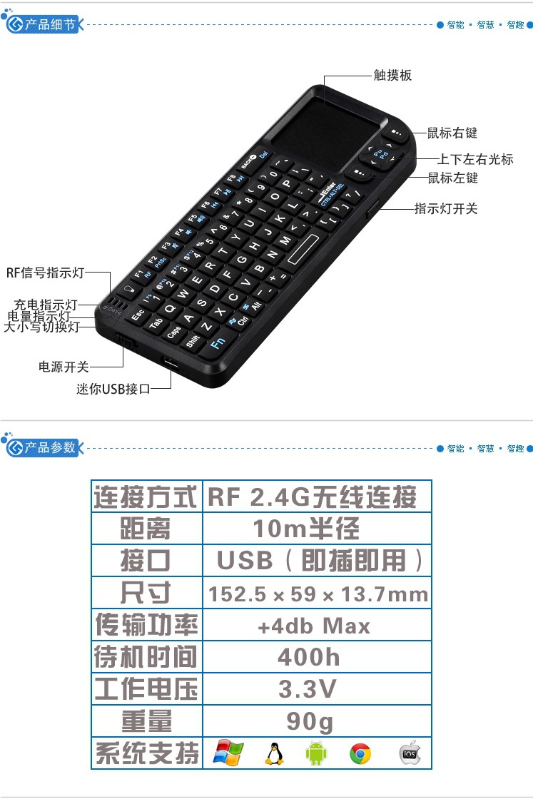 A8多媒体键盘 便捷防水键盘会议手持小键盘多功能键盘跨境现货