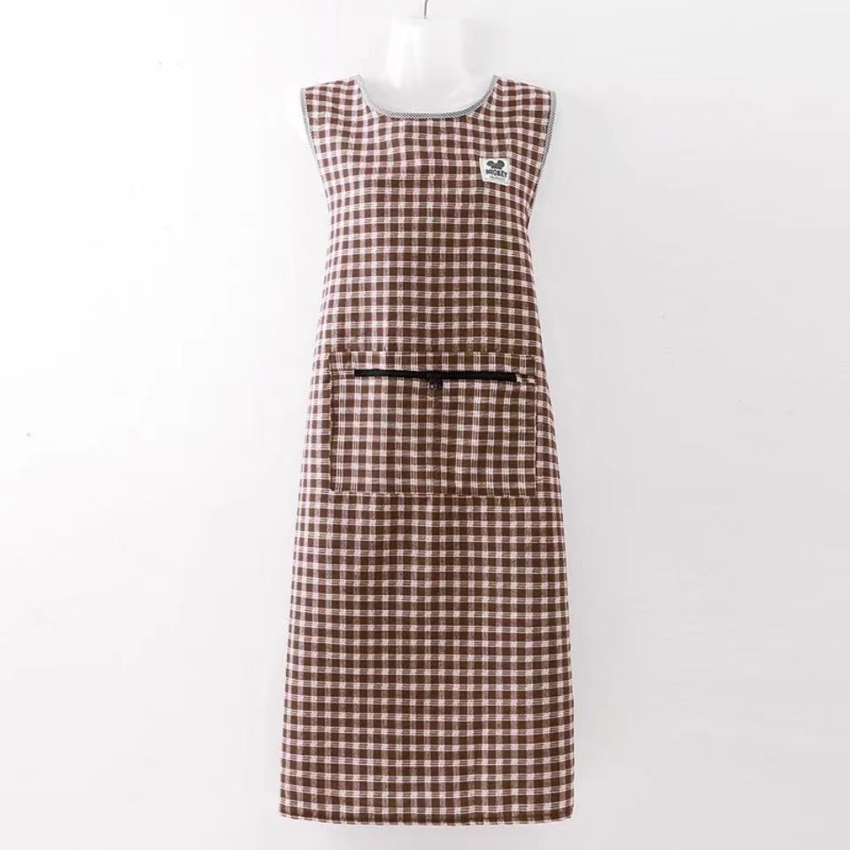 加长款防污厨房工作家用做饭拉链大口袋上班棉布坎肩围裙
