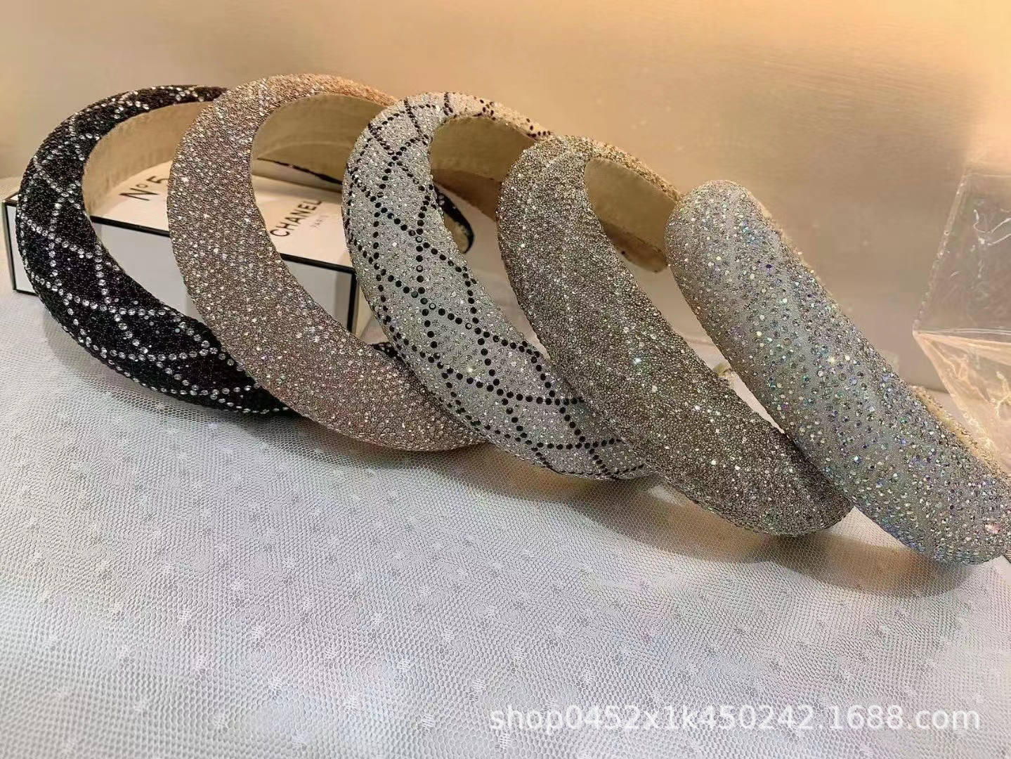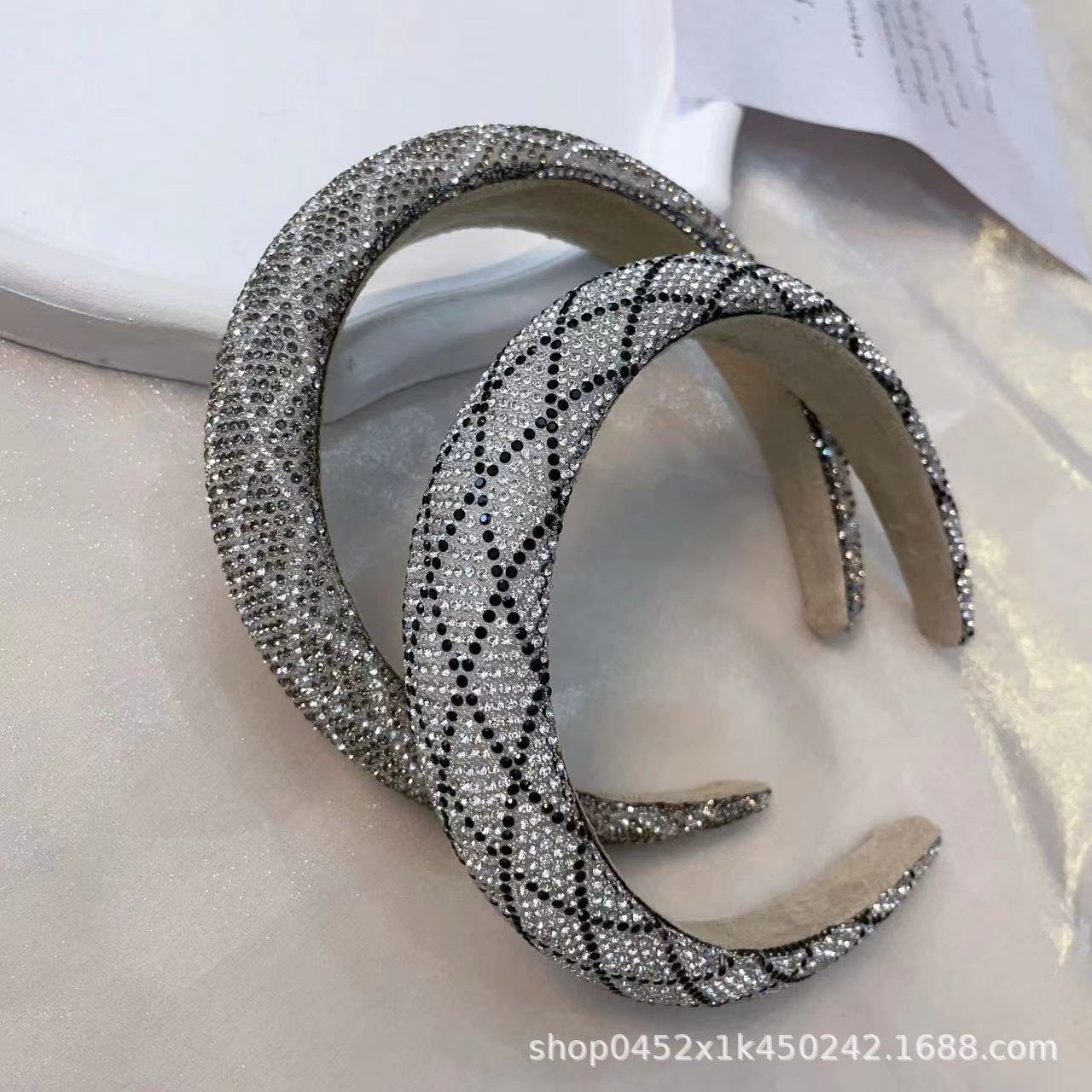 新款满钻时尚海绵发箍欧美水钻宽边高颅顶发捆新款洗脸发饰女