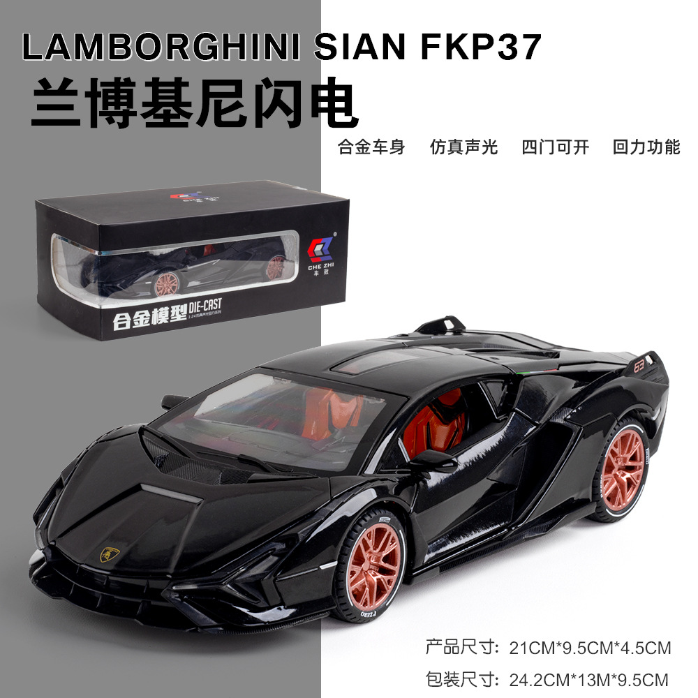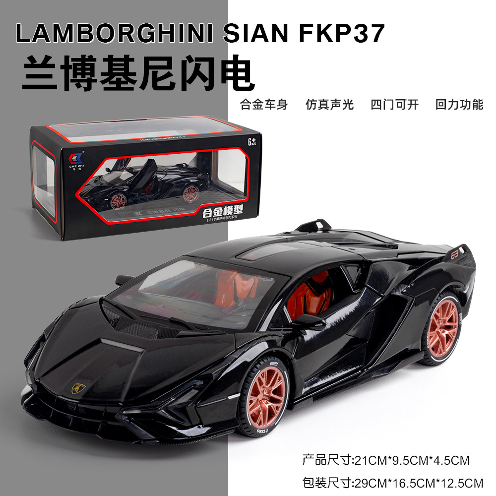1:24蓝波基尼闪电跑车回力声光多开门仿真儿童玩具车合金模型