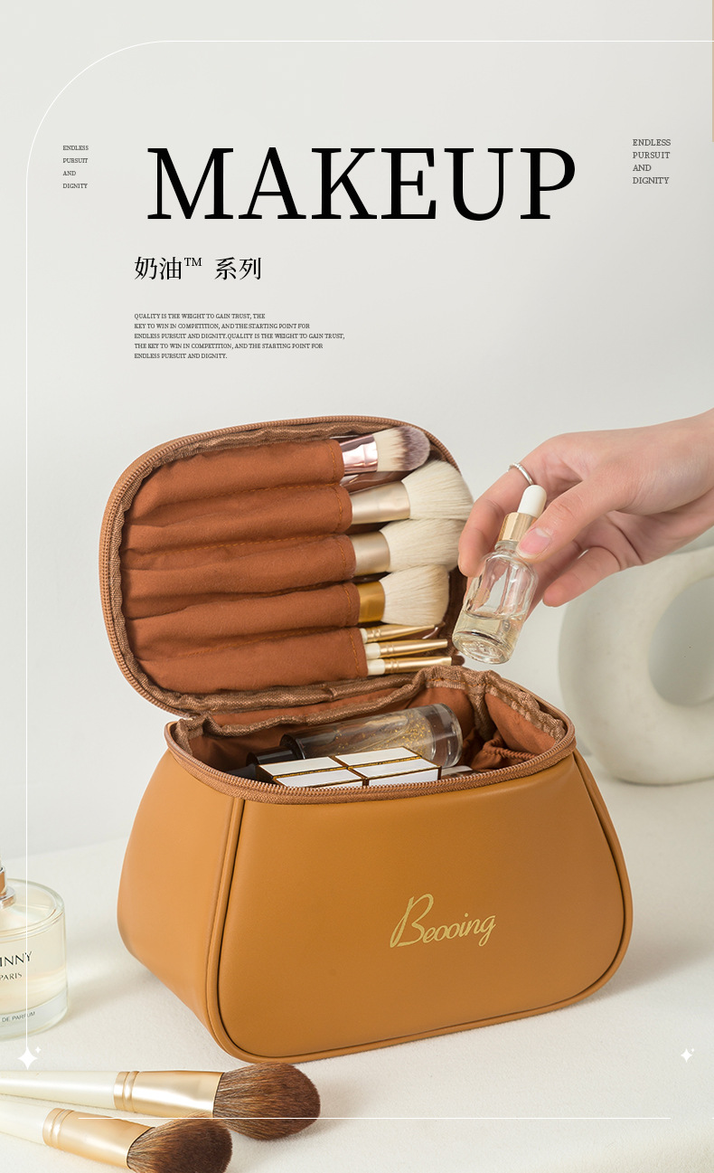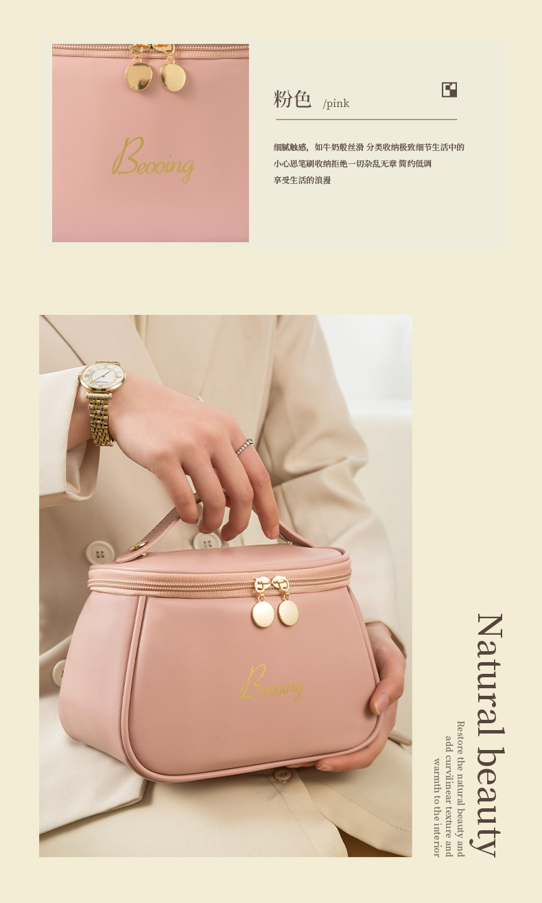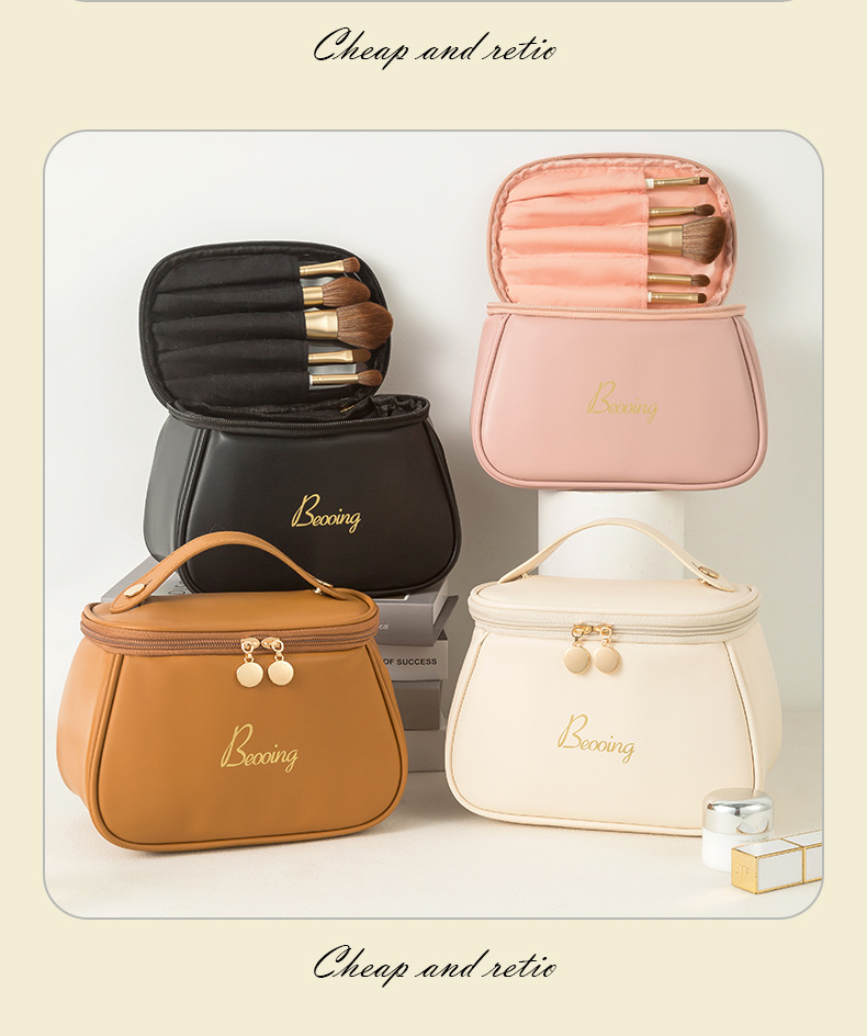 跨境新款化妆品收纳包多功能便携手提PU洗漱包高颜值旅行化妆包