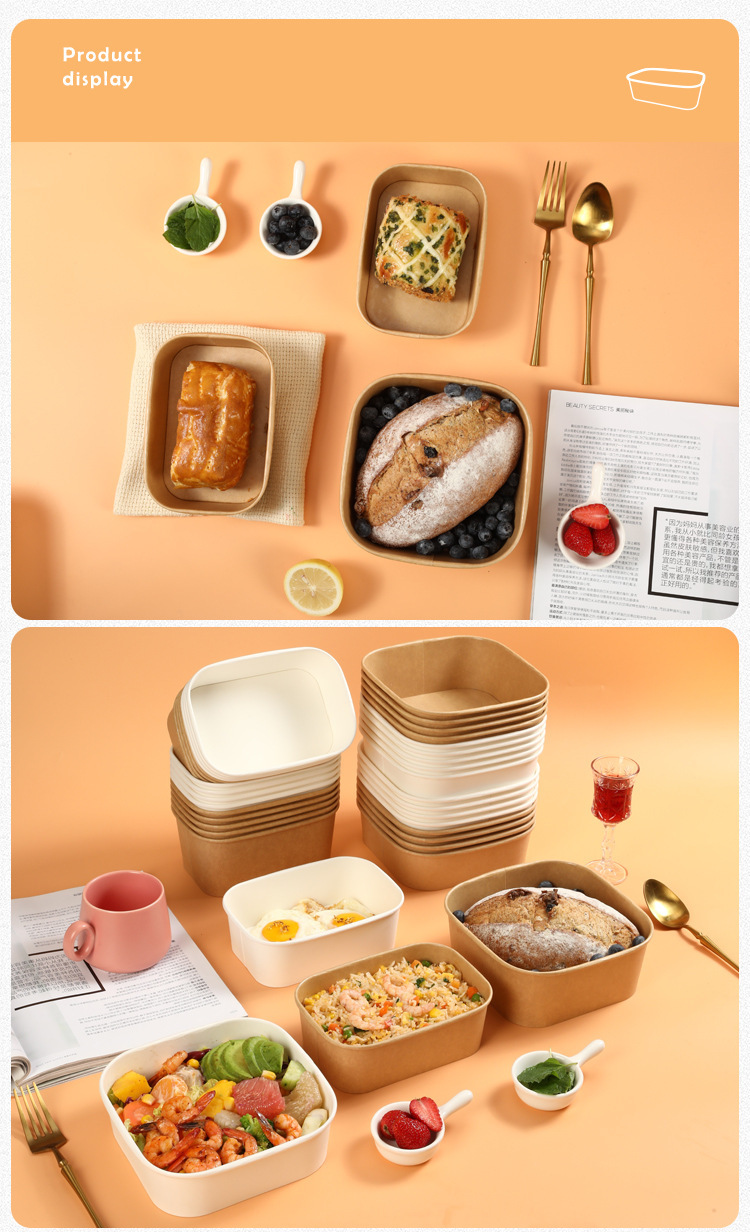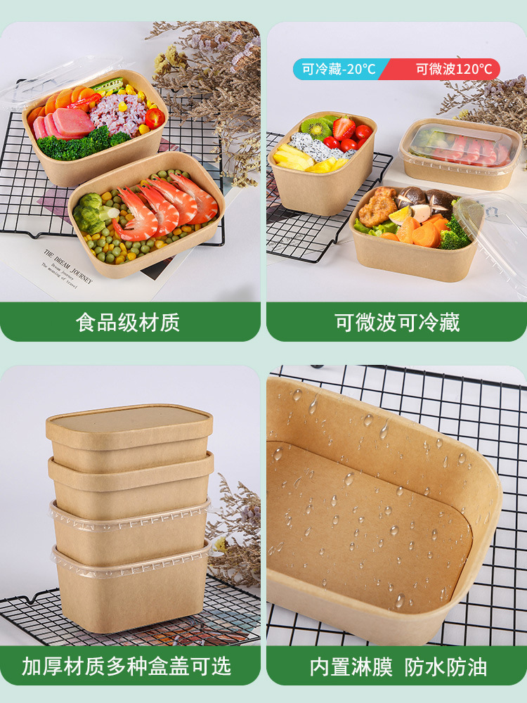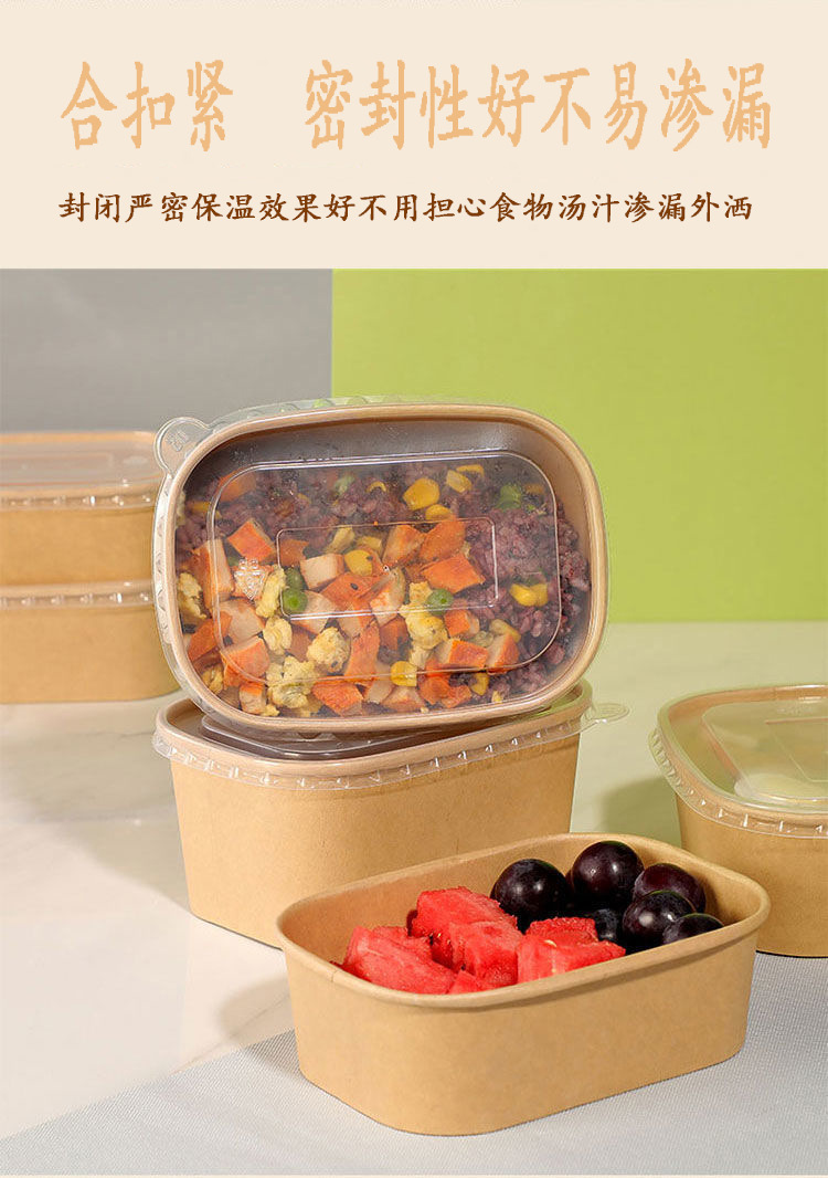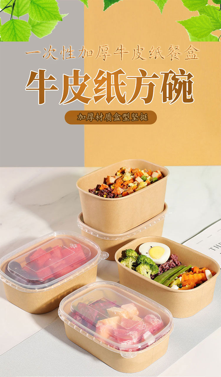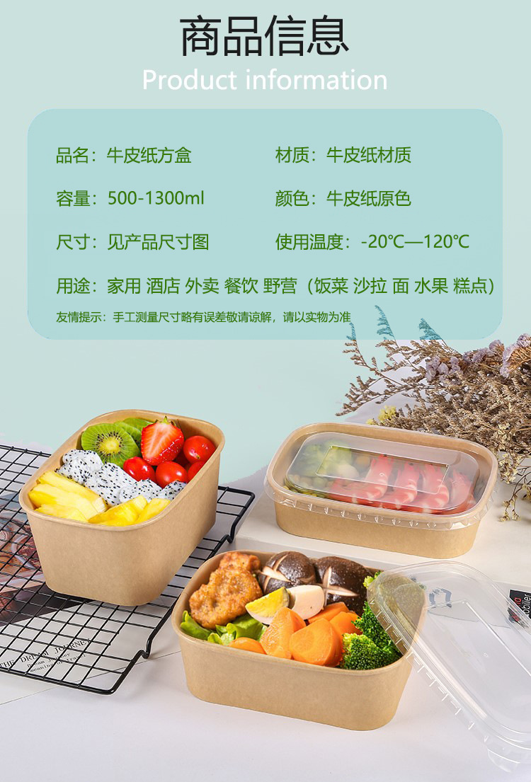 牛皮纸方盒一次性外卖便当快餐盒长方形饭盒环保水果沙拉打包餐盒