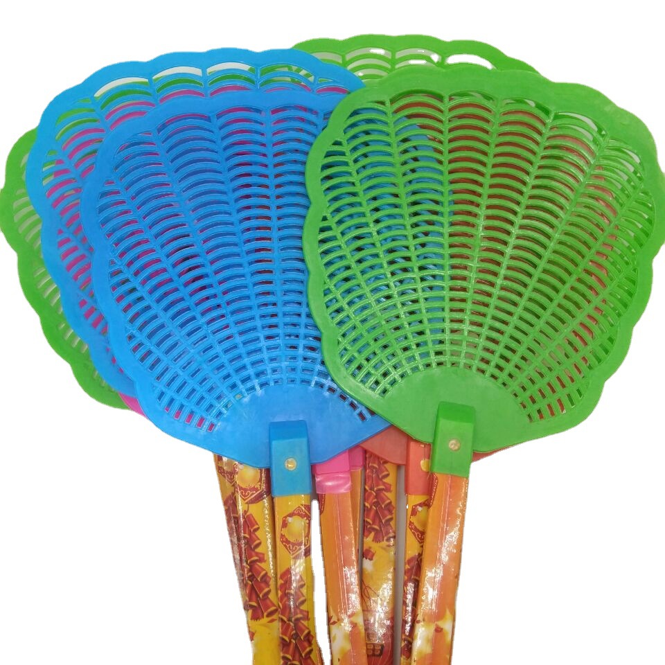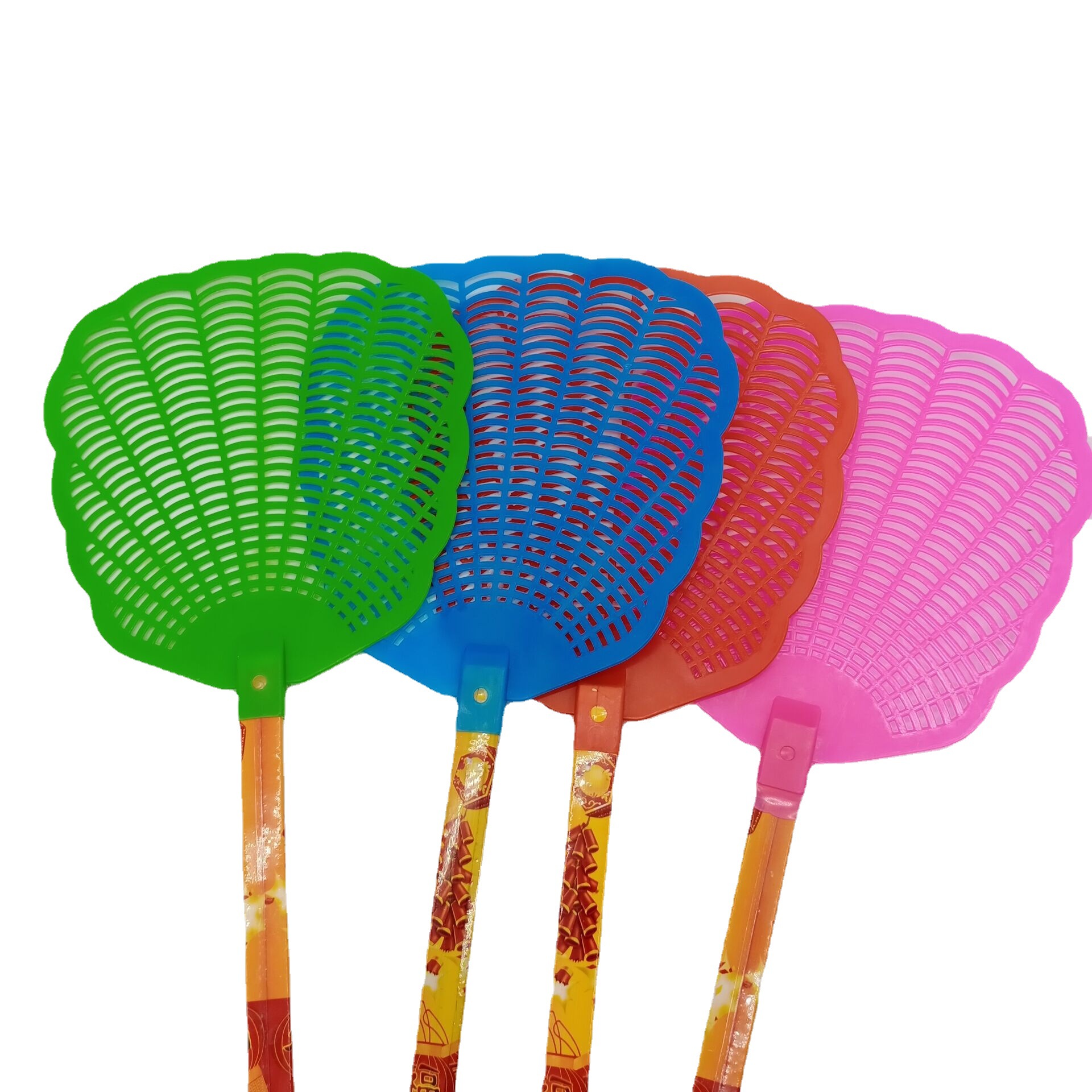 新料加长柄木柄塑料苍蝇拍 大号贝壳蝇子拍加厚网蚊虫拍2元店货源